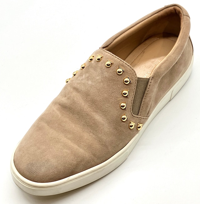 OLD FERRAGAMO(オールドフェラガモ) ベージュスエード×ゴールドスタッズスリッポンスニーカー 5D