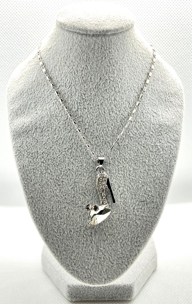 シルバー925 ビッグクリアカラーラインストーン付きハイヒールパンプスネックレス