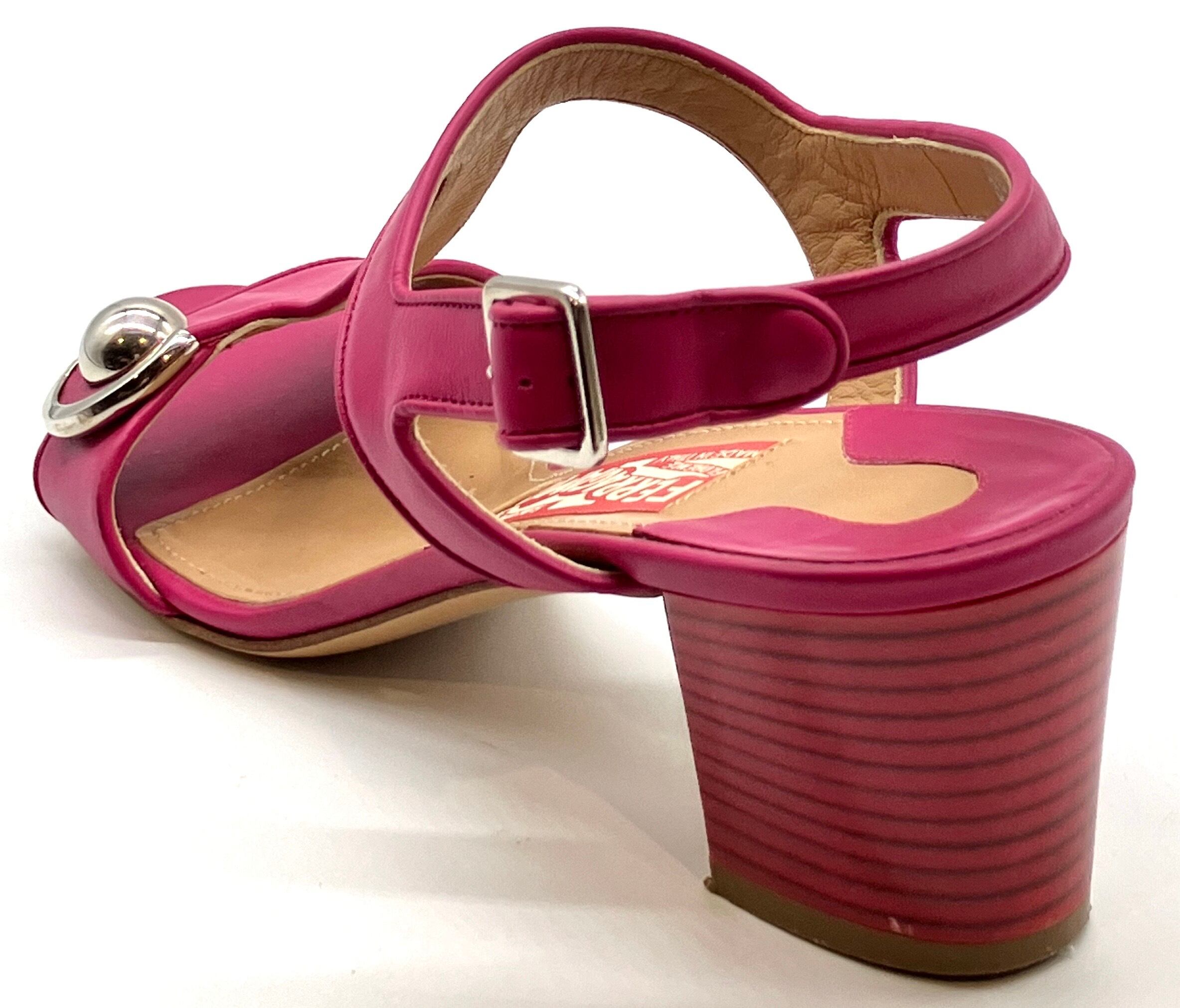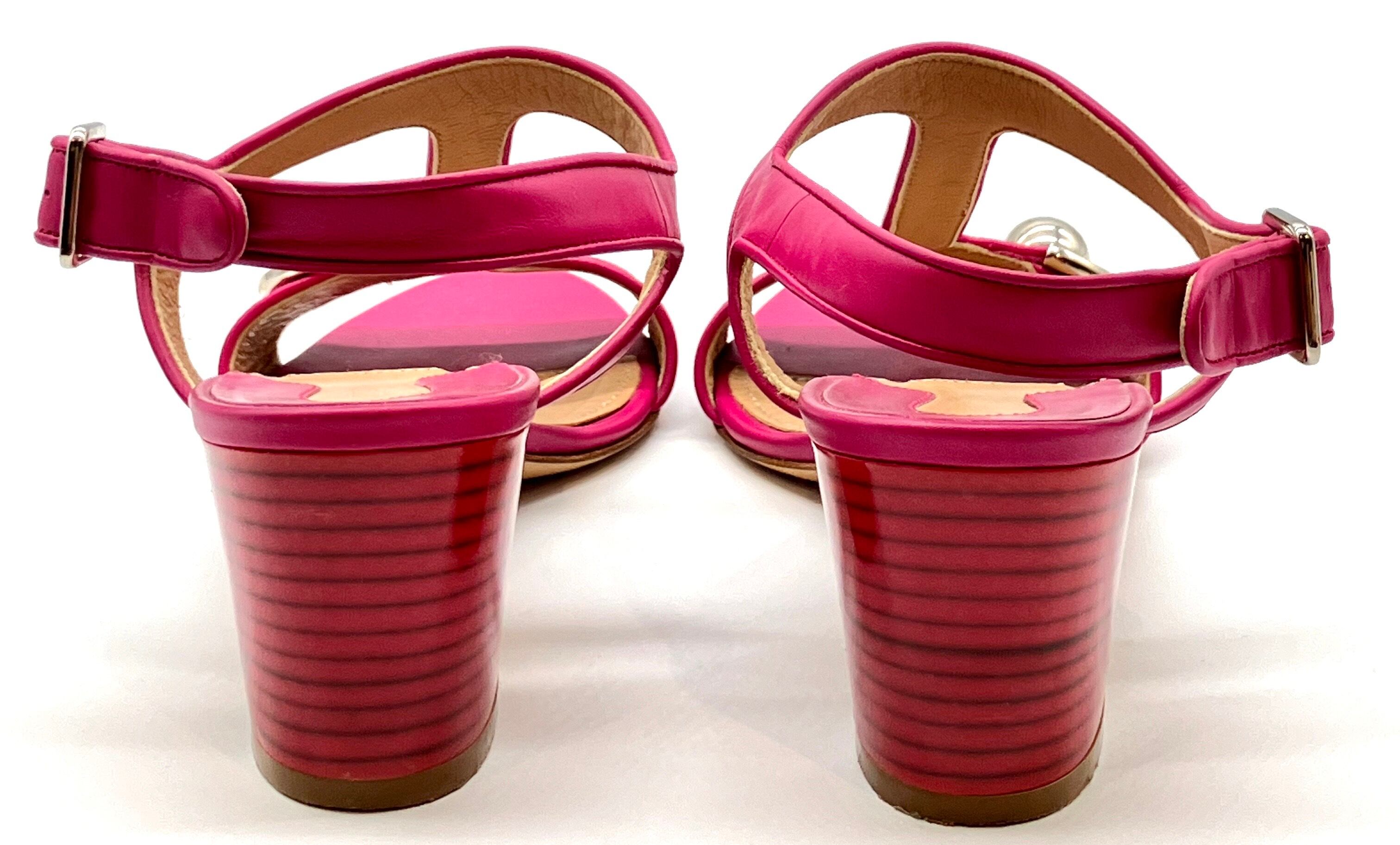 マゼンタピンクレザー×シルバーガンチーニ金具付きサンダル