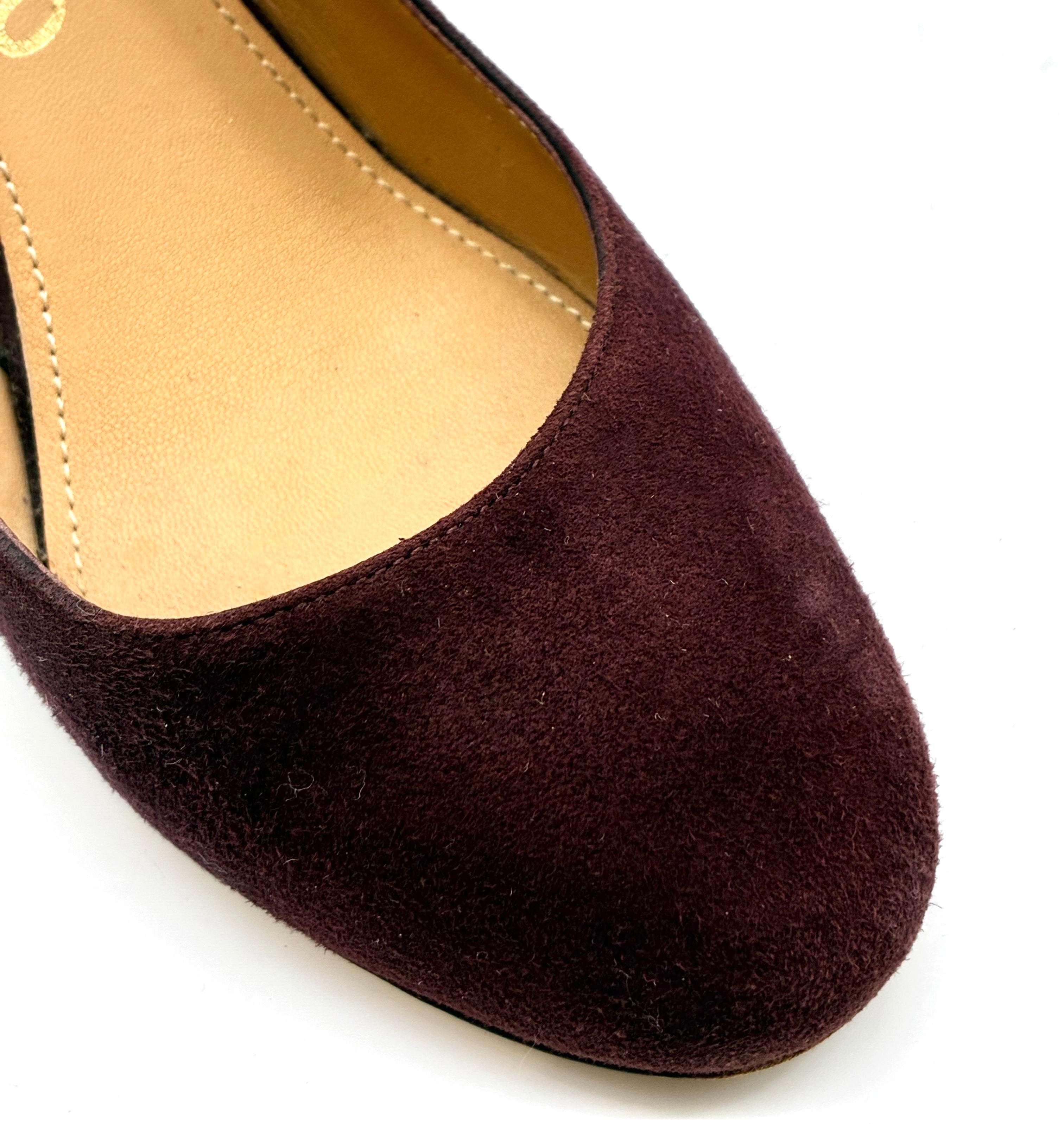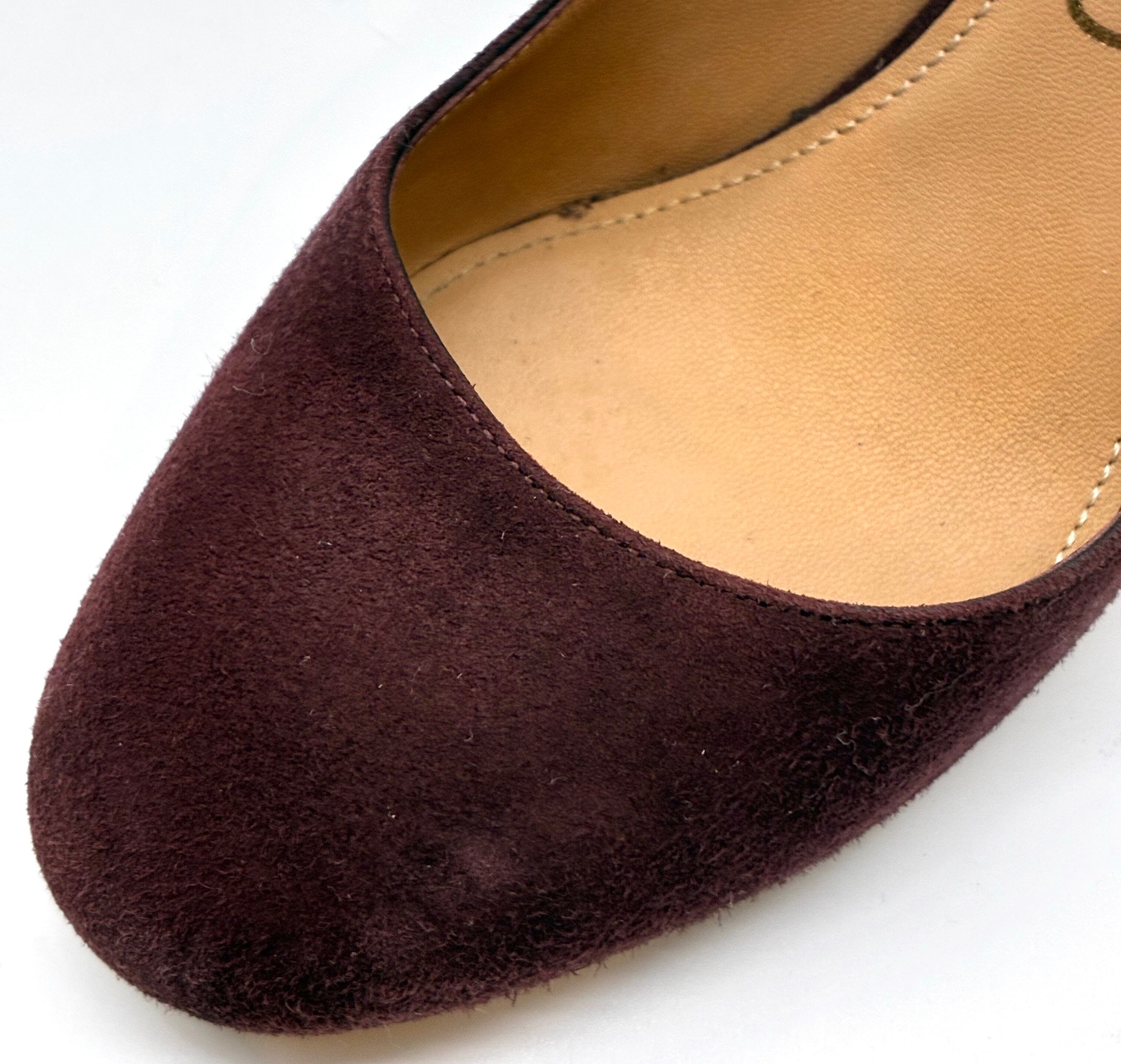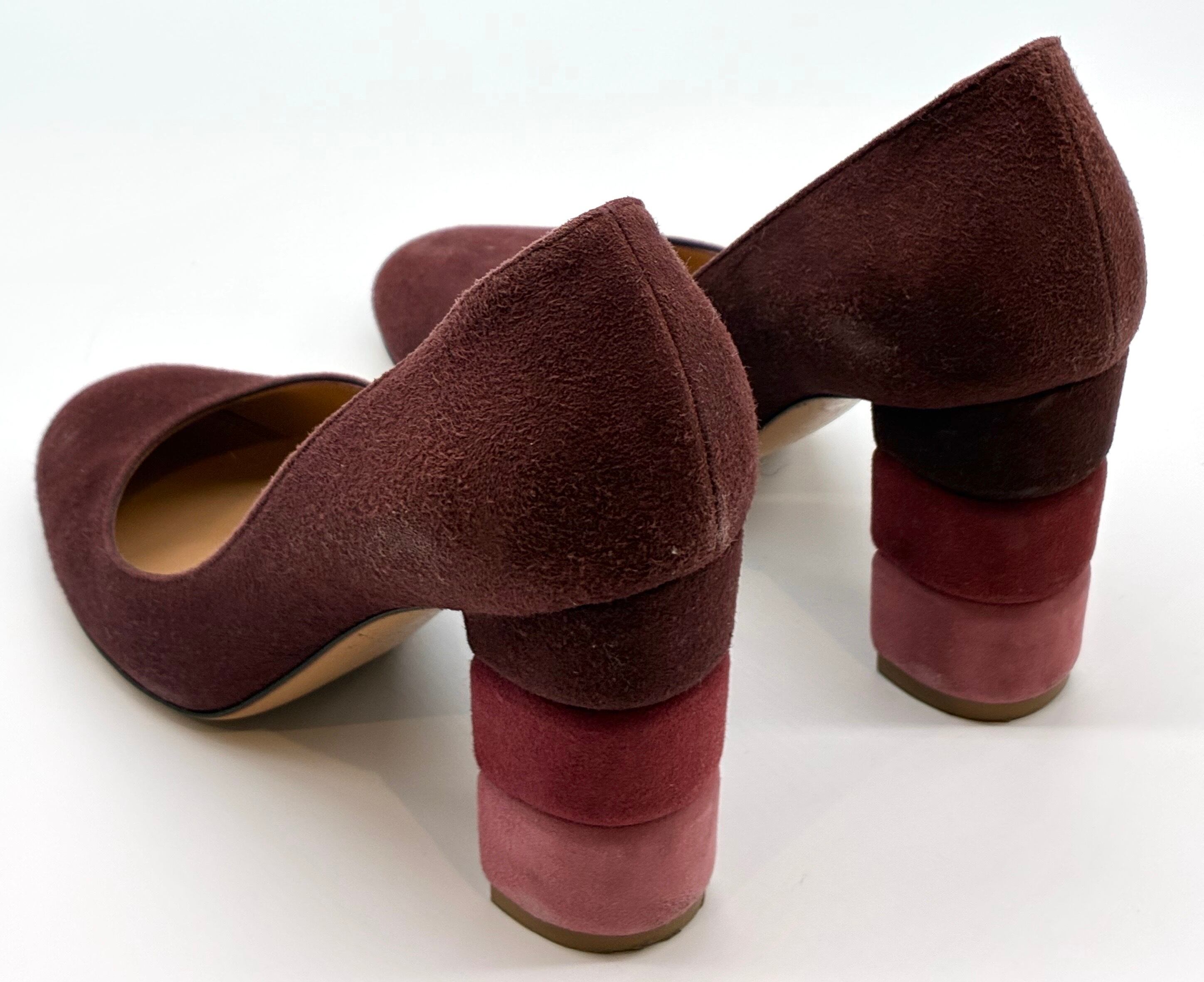 OLD FERRAGAMO(オールドフェラガモ)モーヴパープル×トリコロールカラーデザインヒールスエードパンプス 5C