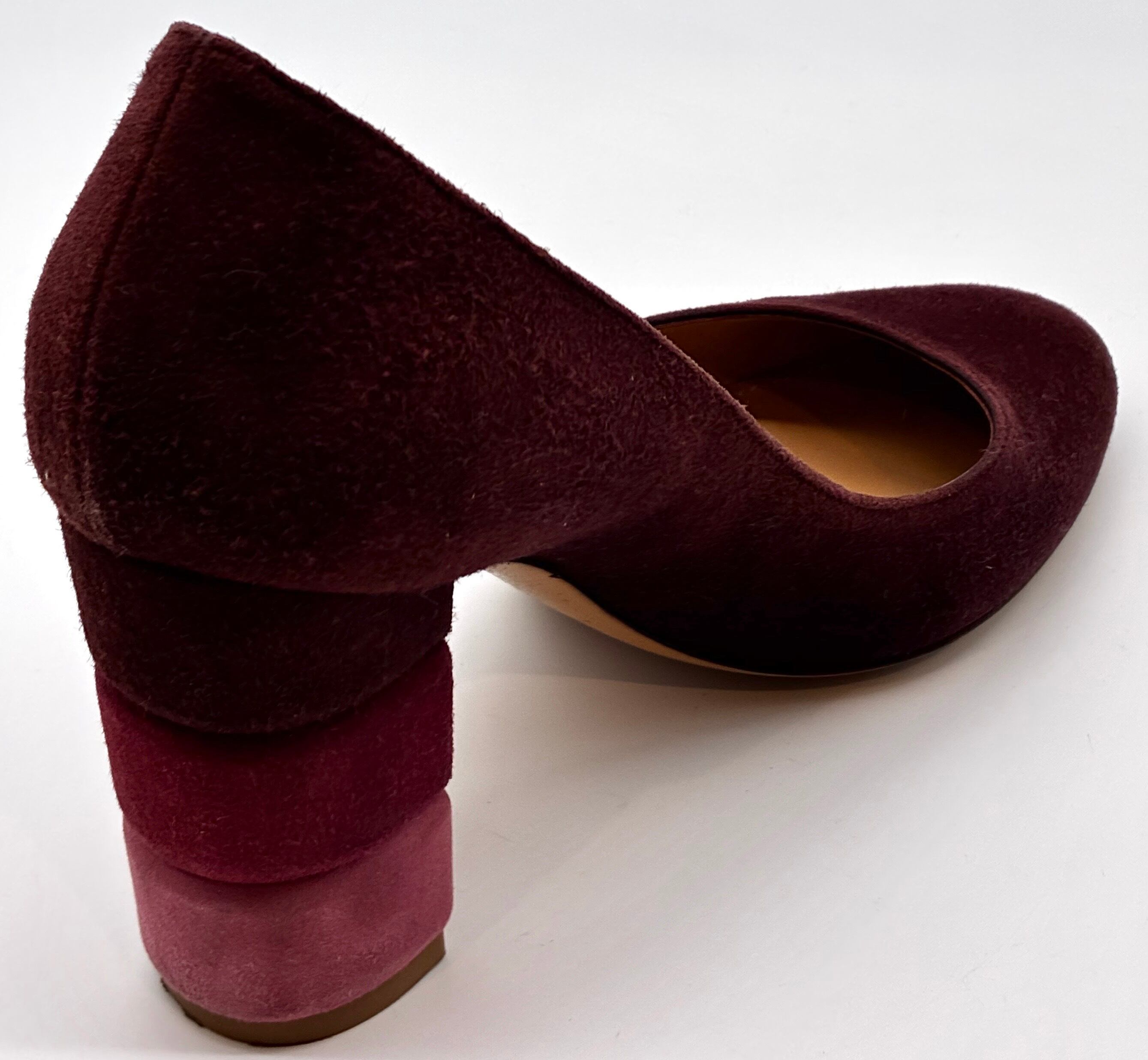 モーヴパープル×トリコロールカラーデザインヒールスエードパンプス