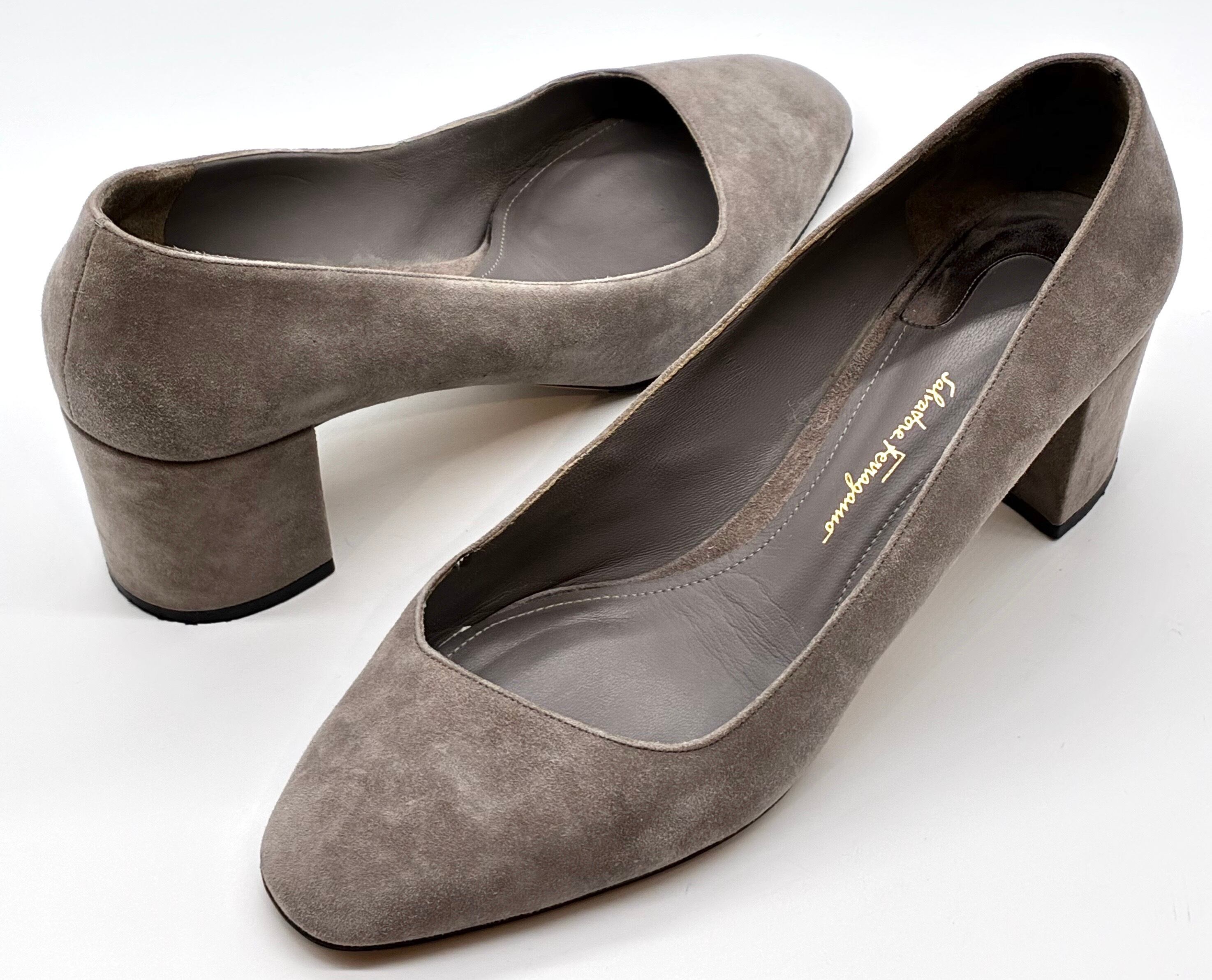 OLD FERRAGAMO(オールドフェラガモ)グレースエードチャンキーヒールパンプス 9D