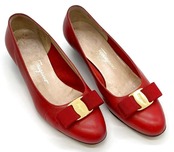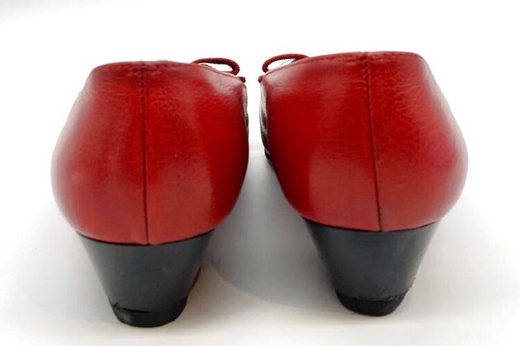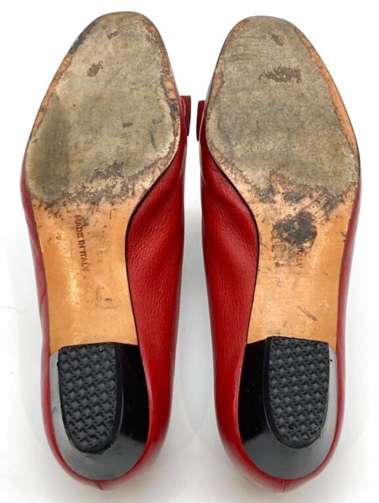 OLD FERRAGAMO(オールドフェラガモ) レッドレザーヴァラリボンパンプス 5 1/2C
