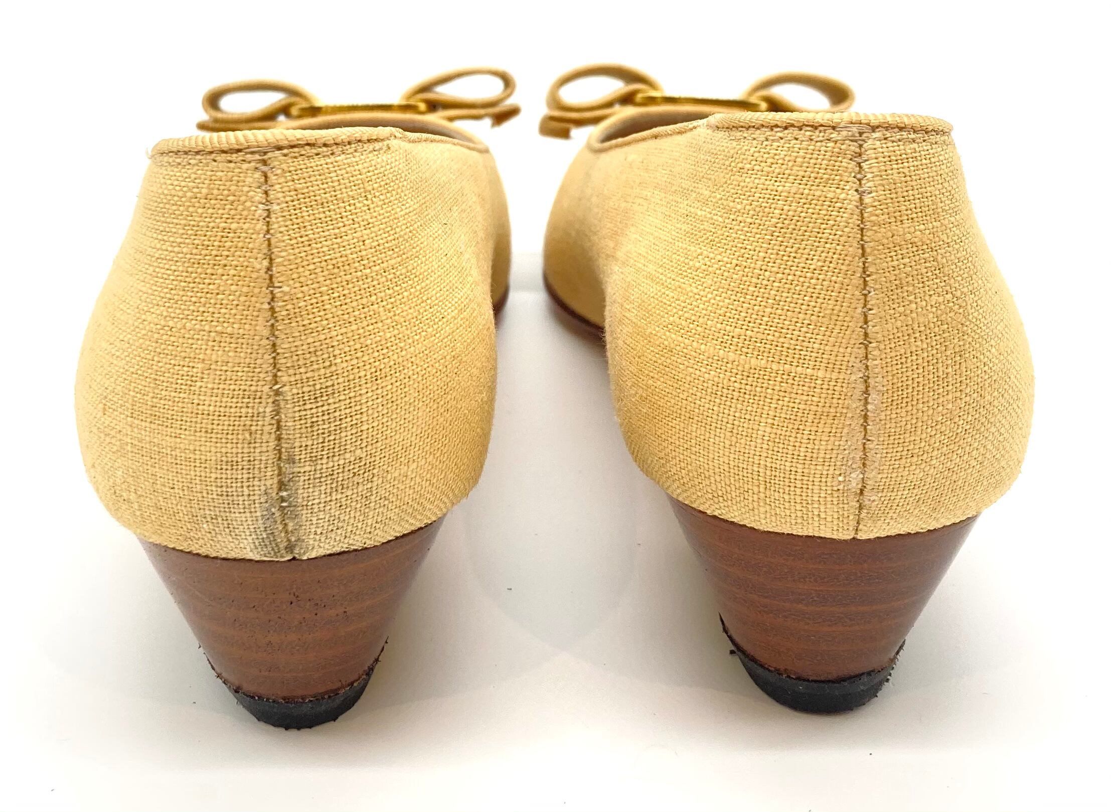 OLD FERRAGAMO(オールドフェラガモ) キナリベージュファブリックヴァラリボンパンプス 6 1/2B