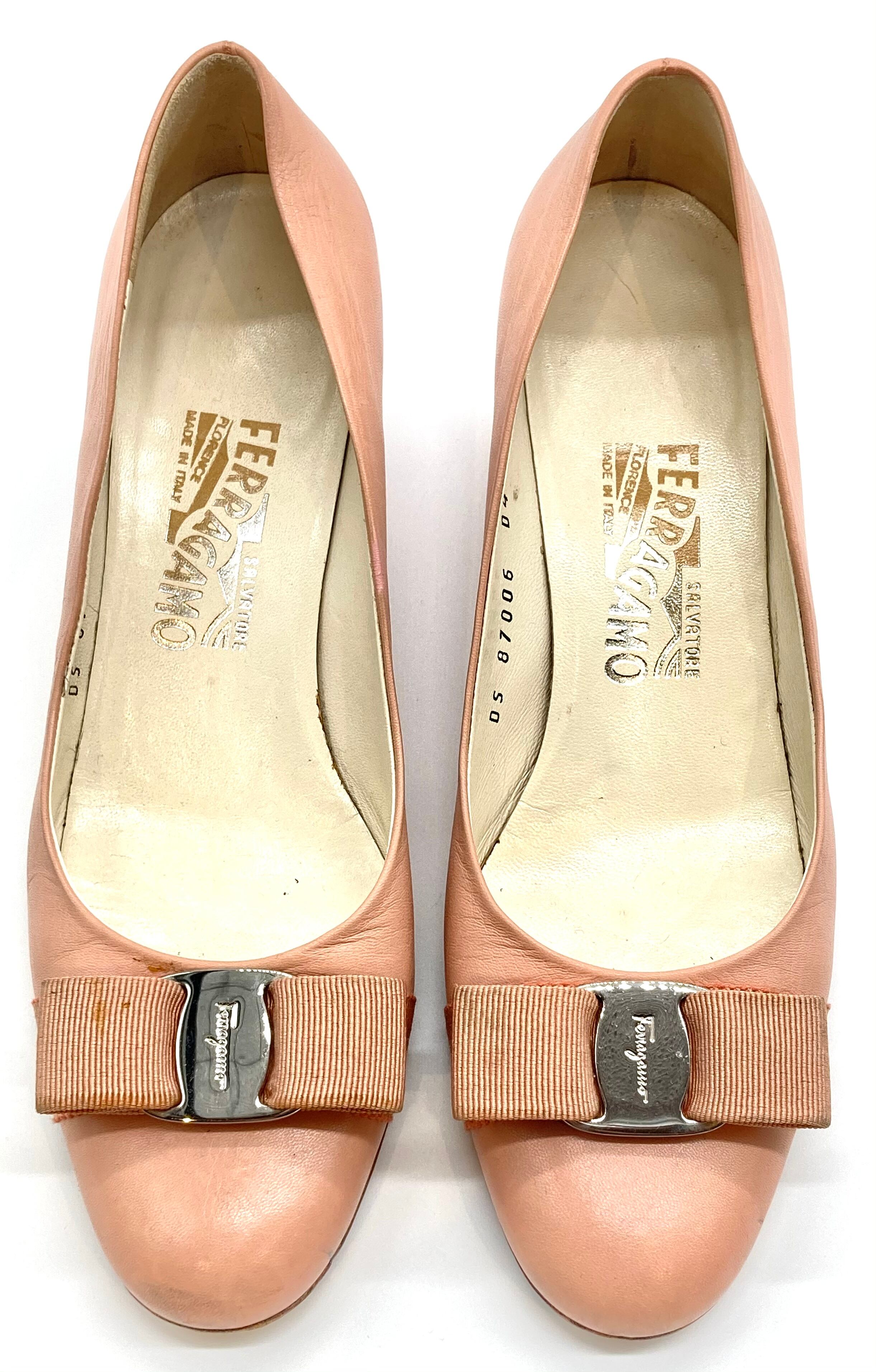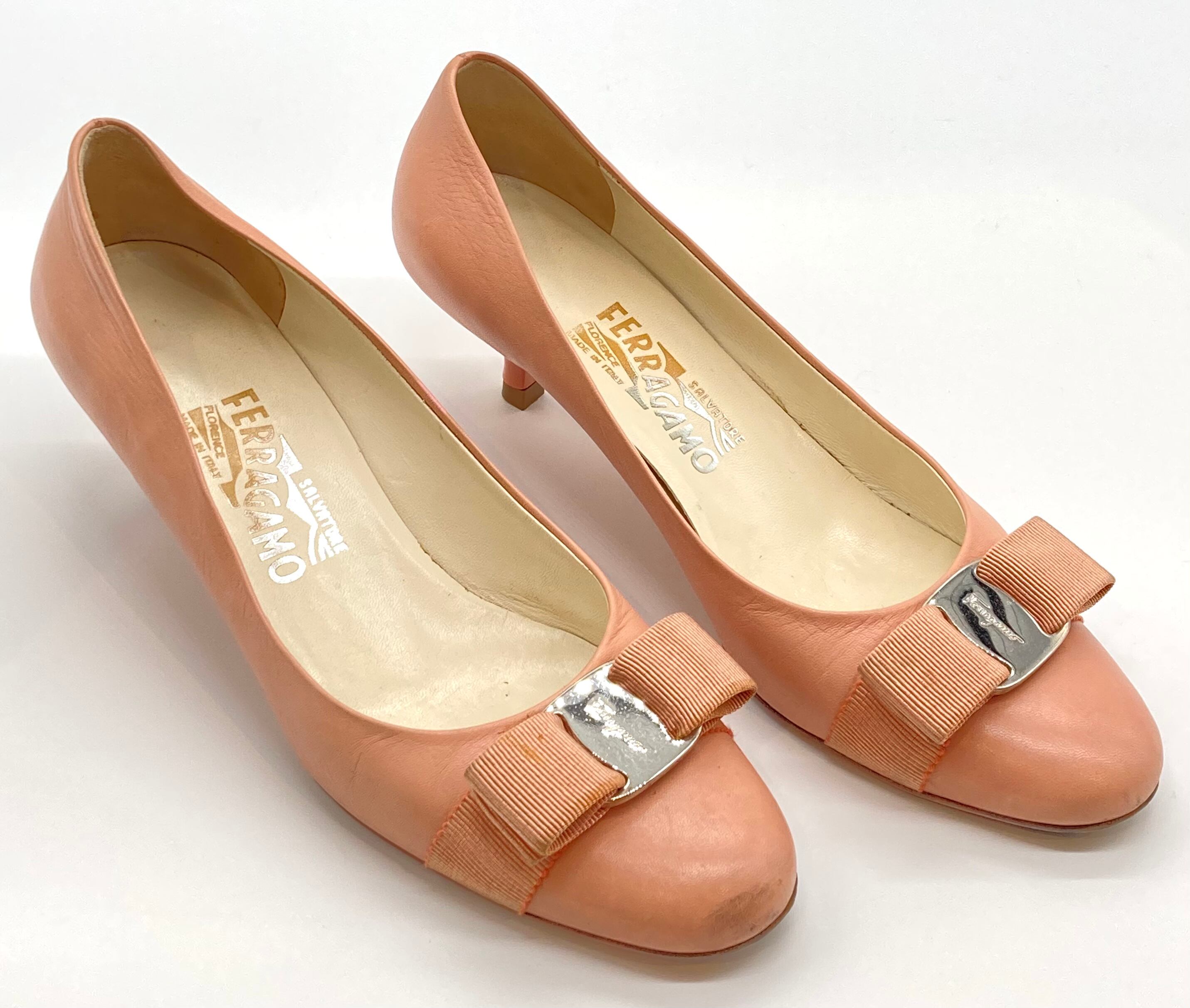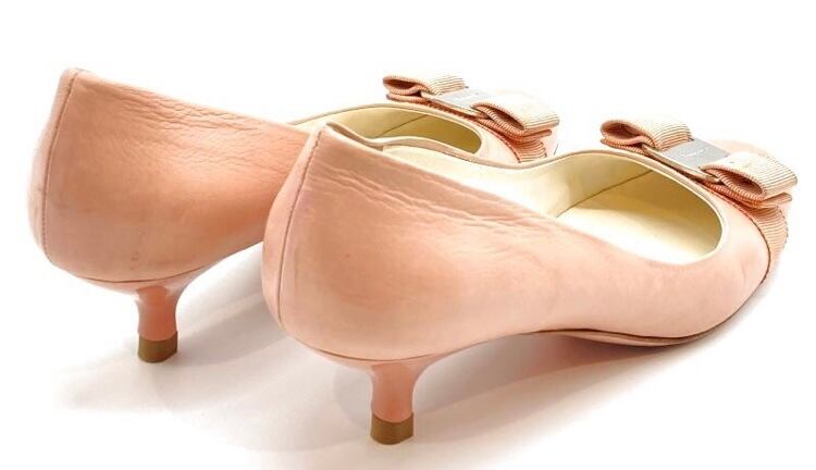 OLD FERRAGAMO(オールドフェラガモ) サーモンピンクヴァラリボンパンプス 6 1/2B