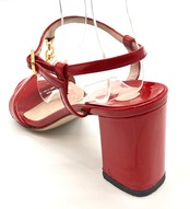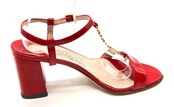 レッドパテント×ガンチーニチェーンアンクルストラップサンダル