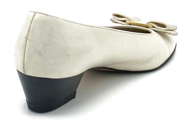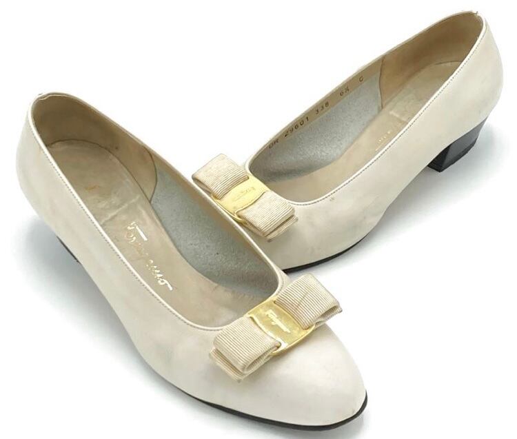 OLD FERRAGAMO(オールドフェラガモ) アイボリーホワイトレザーヴァラリボンパンプス(リボンオーダーリカラー) 6 1/2C