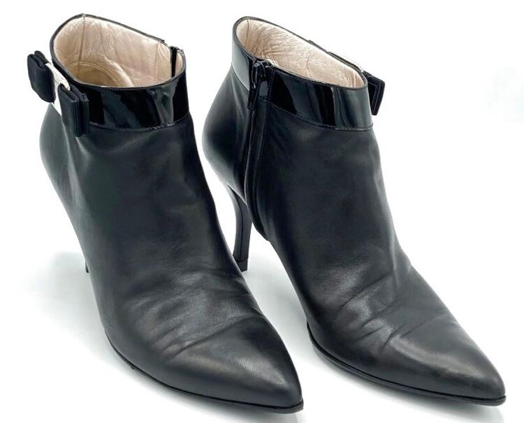 OLD FERRAGAMO(オールドフェラガモ) ブラックレザーヴァラリボン付きブーティー 7
