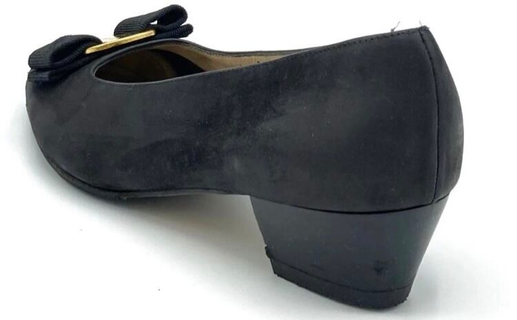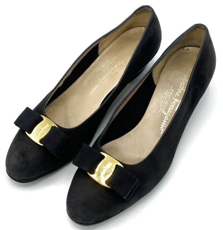 OLD FERRAGAMO(オールドフェラガモ) ブラックスエードヴァラリボンパンプス 7 1/2C