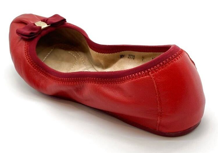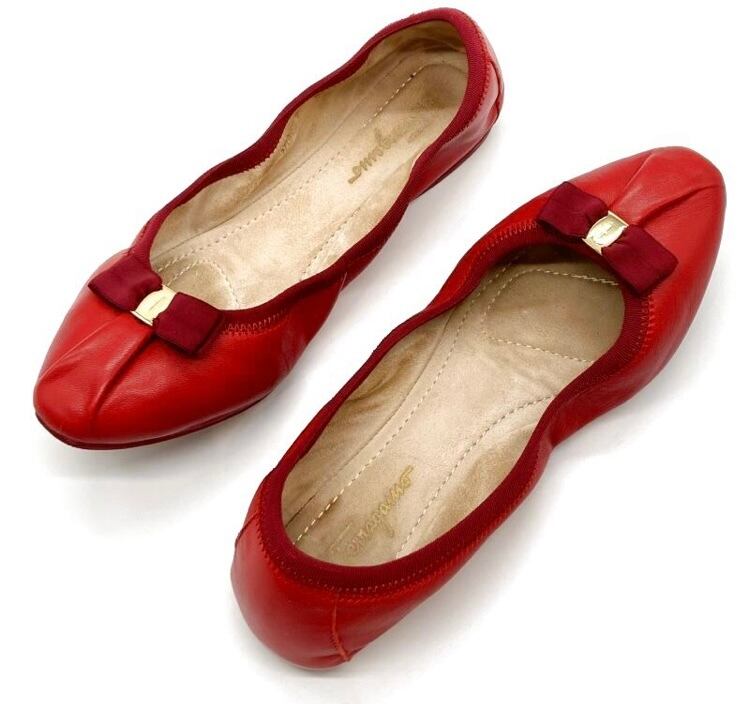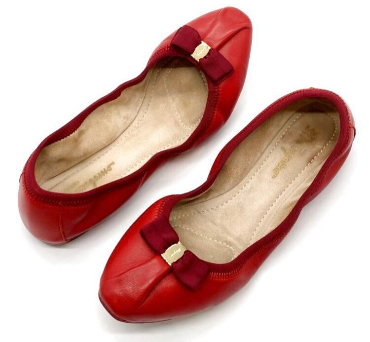 OLD FERRAGAMO(オールドフェラガモ/ヴィンテージ)レッドレザーリボンバレエフラットシューズ MYJOY 7M
