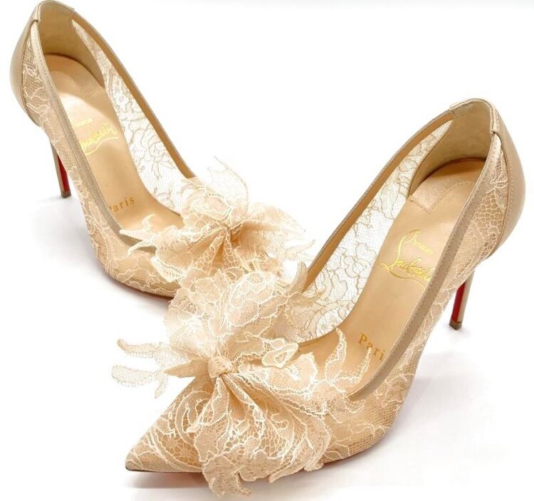 Christian Louboutin(クリスチャンルブタン)ならではのレッドソールが1番映えるレースが夢のように美しい一足です。