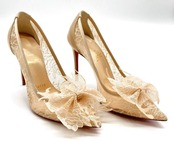Christian Louboutin(クリスチャンルブタン)ベージュレース×ビッグリボンパンプスDELIKATISSIMA 34 1/2