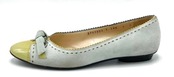 ライトグリーンスエード×パテントガンチーニリボンフラットパンプス