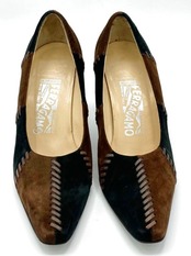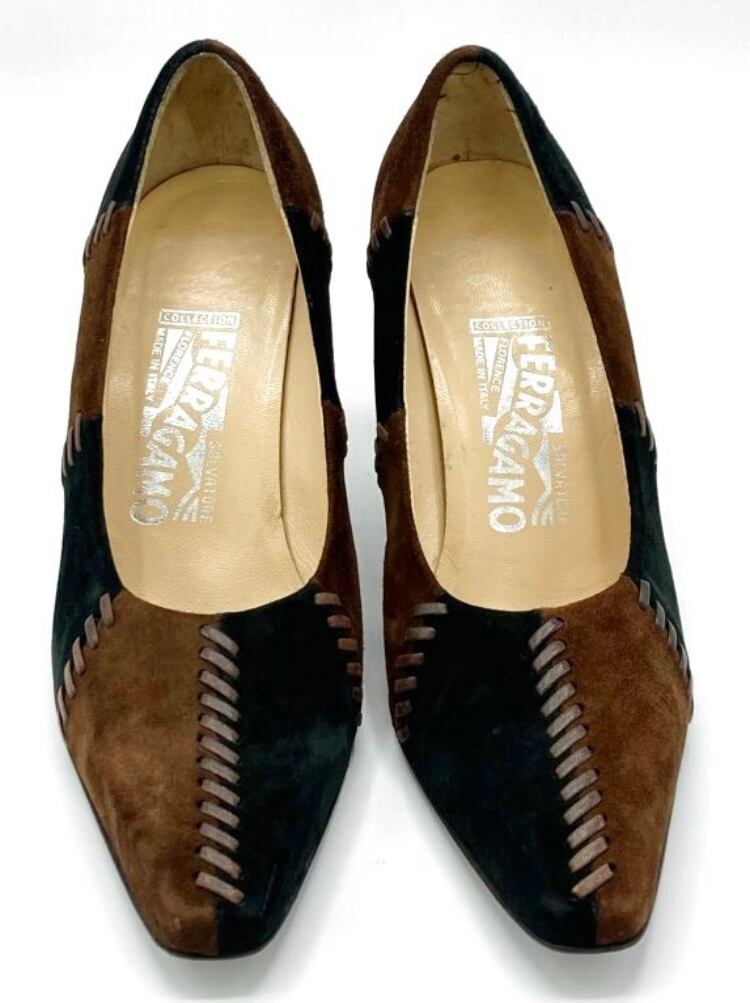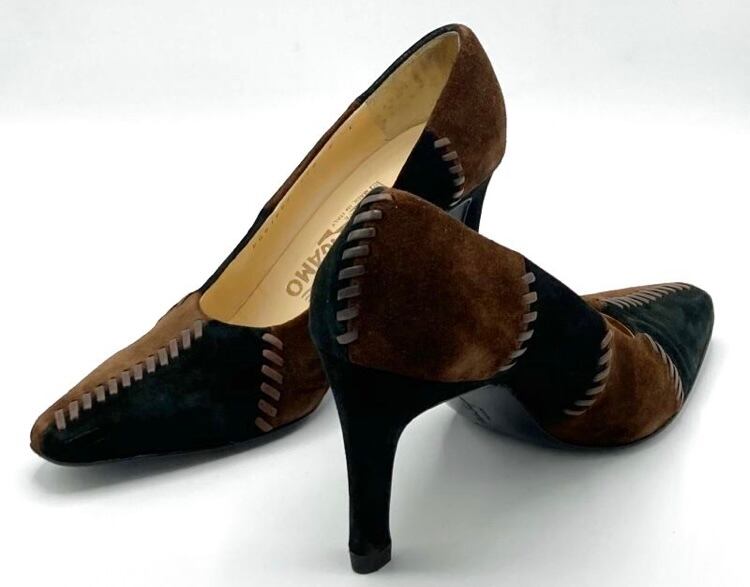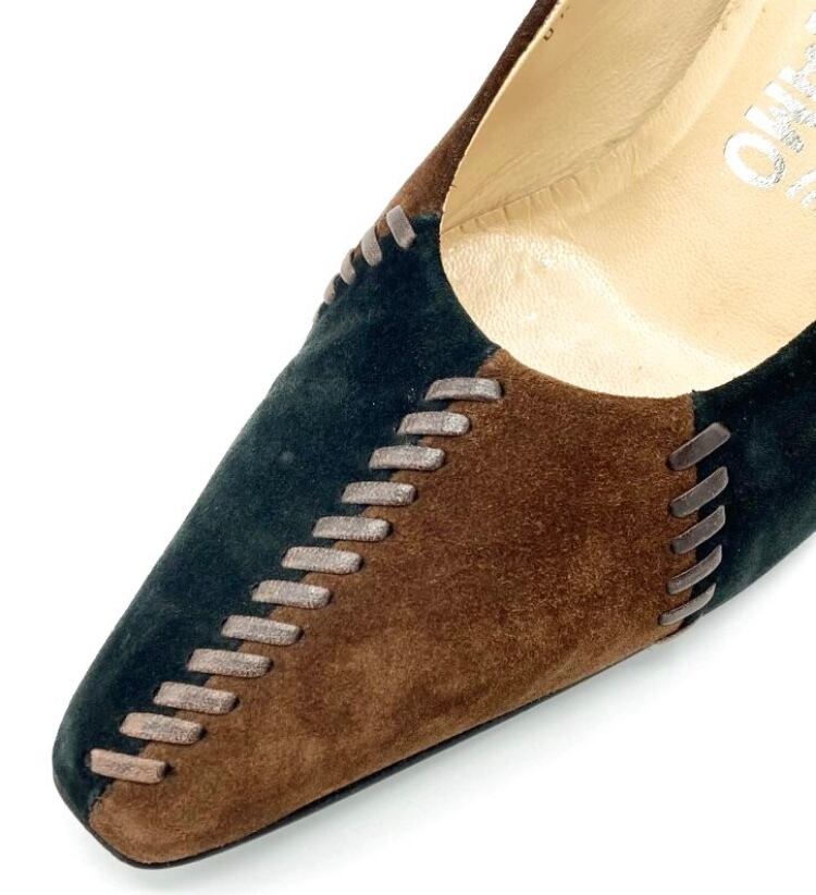 OLD FERRAGAMO(オールドフェラガモ) ブラウン×ブラックスエードパッチワークパンプス 7C