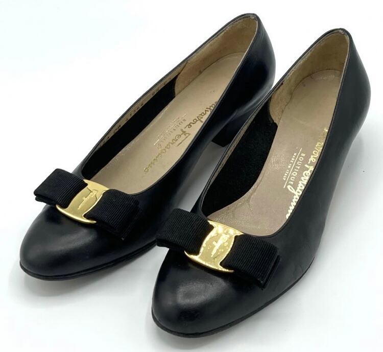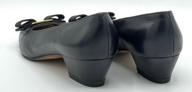 OLD FERRAGAMO(オールドフェラガモ) ブラックレザーヴァラリボンパンプス 6 1/2C