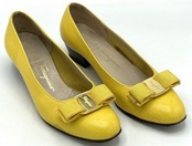 OLD FERRAGAMO(オールドフェラガモ) イエロー型押しレザーヴァラリボンパンプス 5 1/2C
