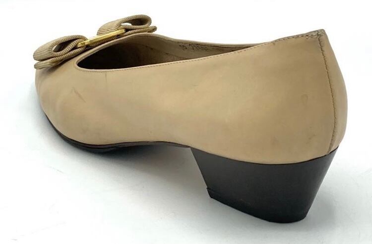 OLD FERRAGAMO(オールドフェラガモ) ベージュレザーヴァラリボンパンプス 7C