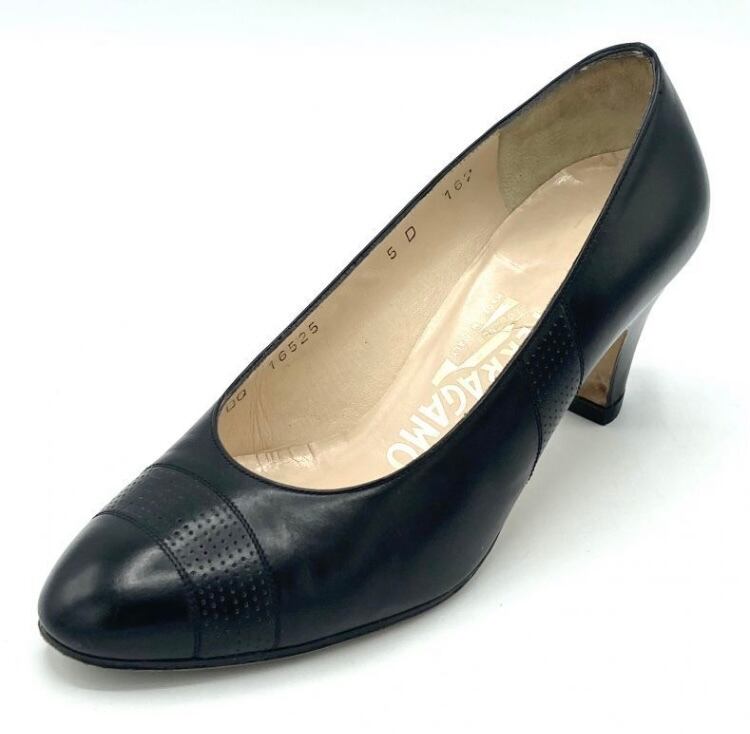 OLD FERRAGAMO(オールドフェラガモ) ブラックレザーパンプス 5D
