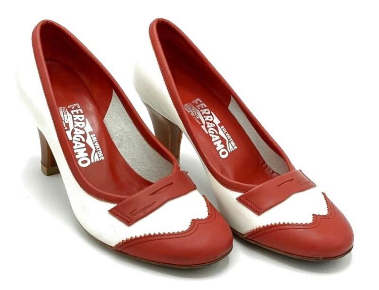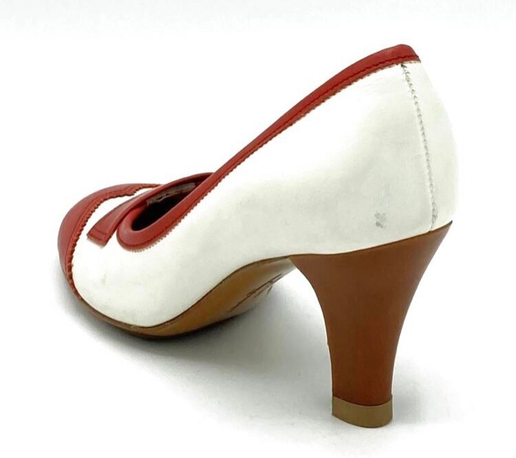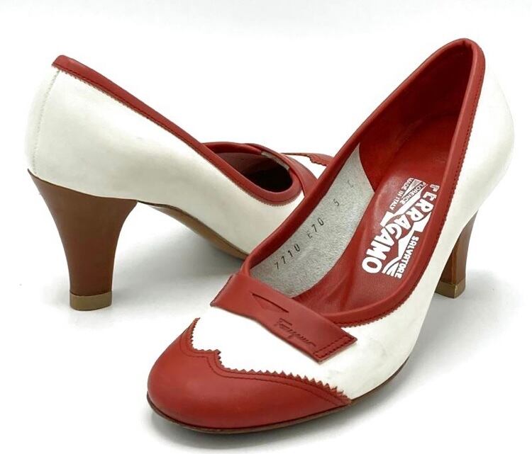 OLD FERRAGAMO(オールドフェラガモ) レッド×ホワイトバイカラーパンプス 5C