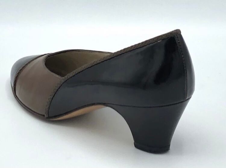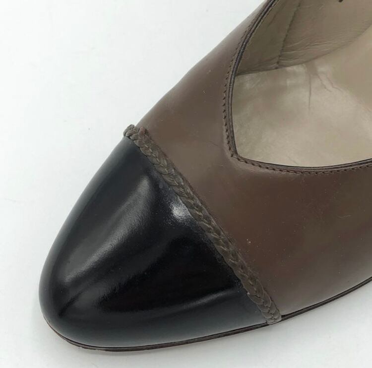 OLD FERRAGAMO(オールドフェラガモ) ブラウンパテント×レザーパンプス 4D