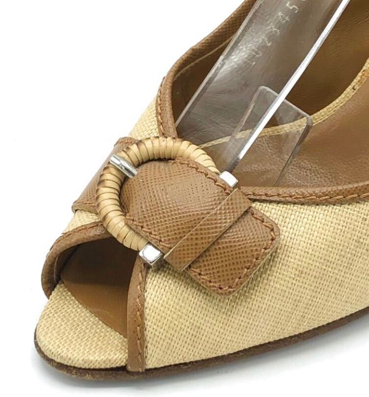 コンディション◆オールド・ヴィンテージの中古品になり、ラフィア素材に汚れが少々と左足のヒール内側にダメージがありますが全体的にはきれいでコンディションランクはいい方です。カカトゴム新品交換済み。状態の詳細は写真をご覧くださいませ。