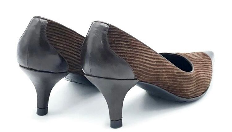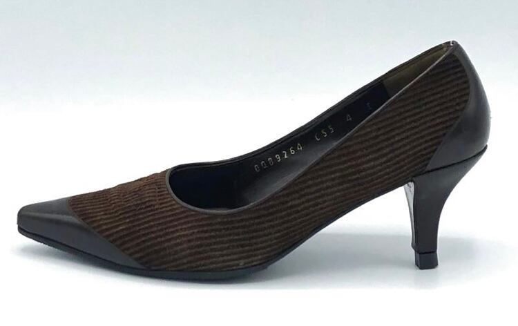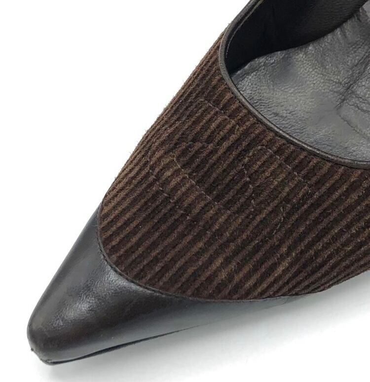 ブラウンストライプスエード×レザーガンチーニパンプス