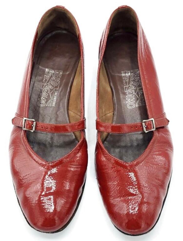 OLD FERRAGAMO(オールドフェラガモ/ヴィンテージ)レッドパテントストラップフラットシューズ 7 1/2C