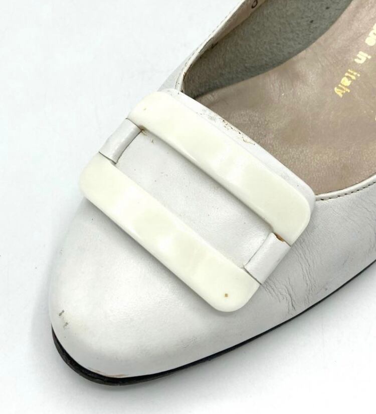 OLD FERRAGAMO(オールドフェラガモ) ホワイトレザースクエアモチーフ付きパンプス 5C