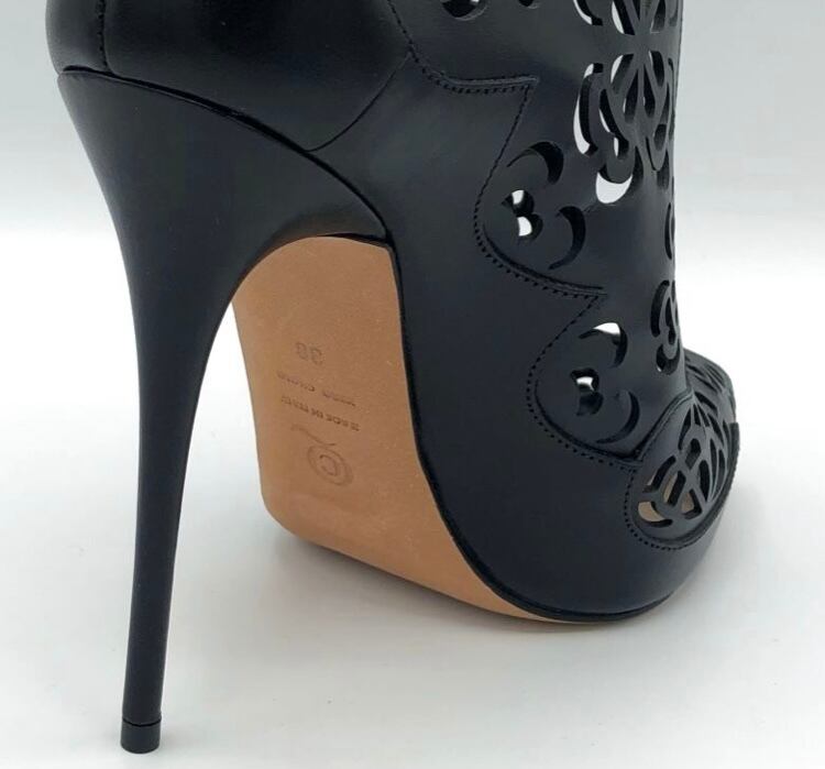 ブラックフラワーカッティングレザーブーティーサンダル38