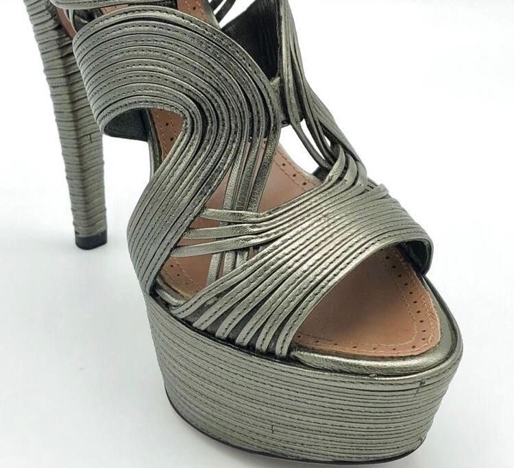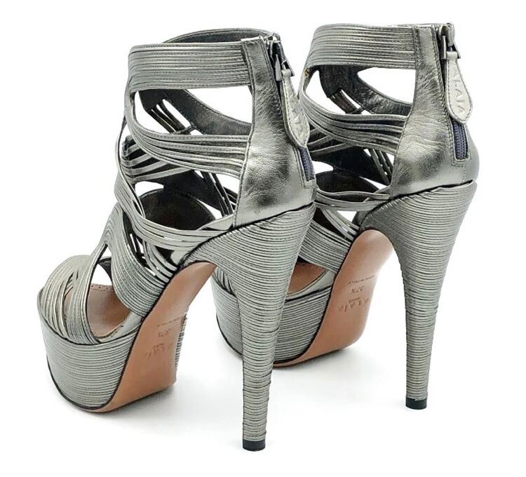 ALAIA(アライア)シルバーグレーグラディエータープラットフォームサンダル37 1/2 [AZX706 ANTRACITE]