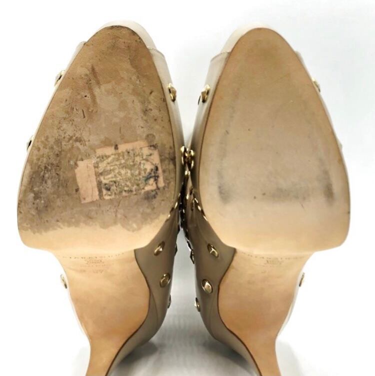 コンディション♦ ソールにシールを剥がしたあとと、試着による擦れがございます。ソールの素材上擦れが目立ちやすいです。レザーにところどころくすみと色飛びが見られますが、全面にスタッズが施されているのであまり目立ちません。
