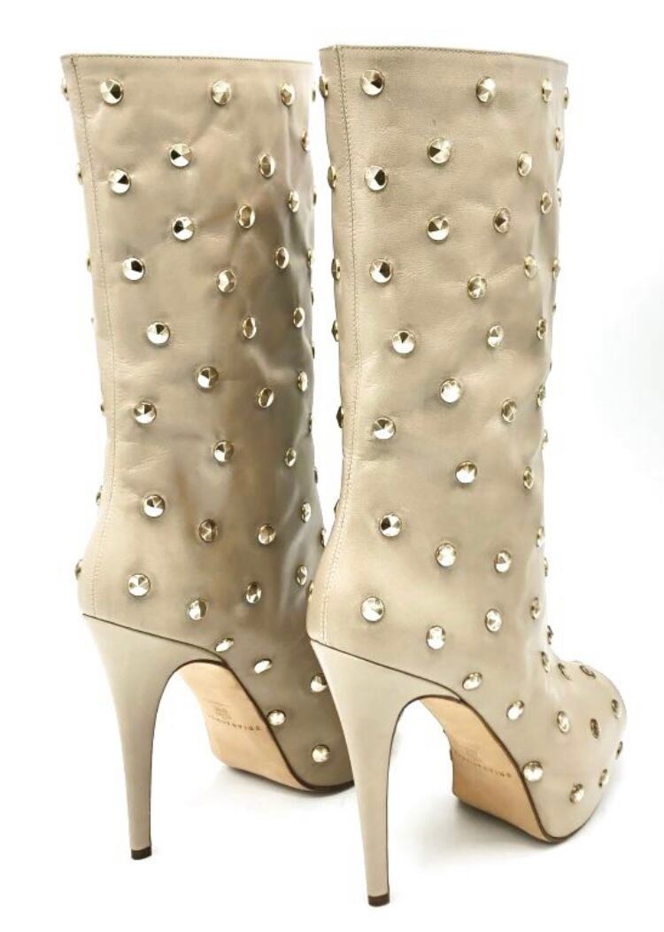 BRIAN ATWOOD(ブライアンアトウッド)ベージュレザーゴールドスタッズ付きオープントゥプラットフォームブーツ37