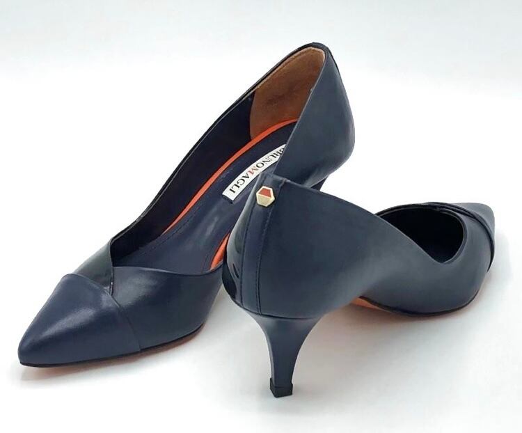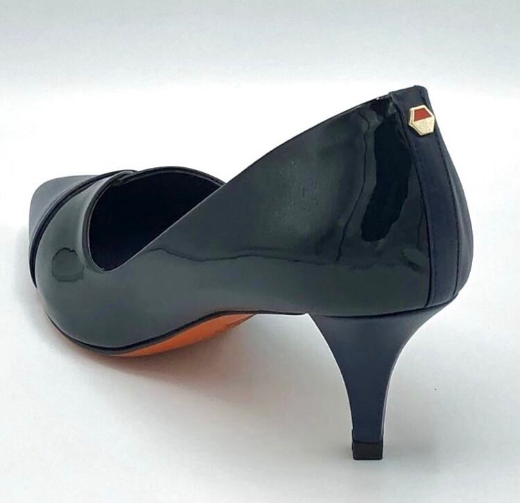 ネイビーレザー×パテントコンビパンプス