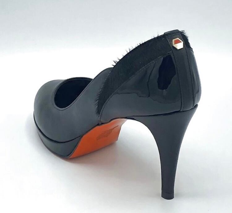 ♥レザー×パテント×ハラコの異素材使いが素敵なBRUNO MAGLI(ブルーノマリ)のブラックパンプス。