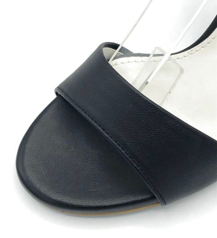 ブラックレザーアンクルストラップサンダル