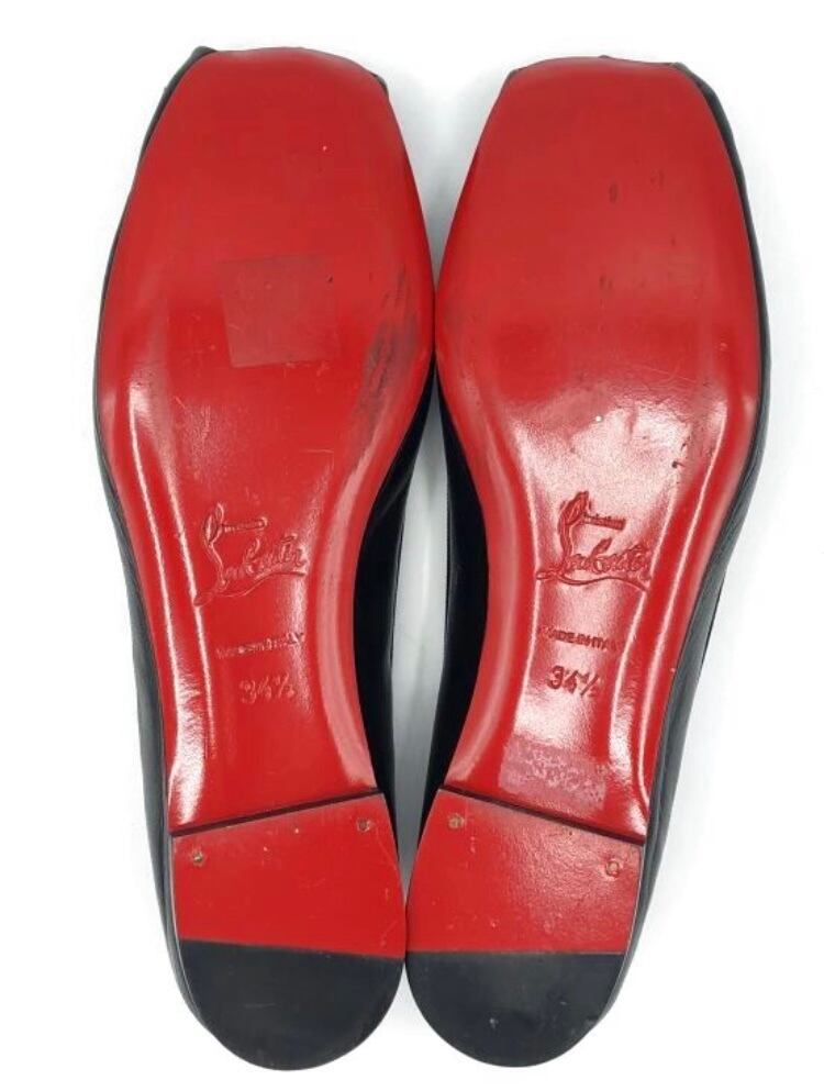 Christian Louboutin(クリスチャンルブタン)クリスチャンルブタンリボン付きブラックレザーバレエシューズ34 1/2 [ROSELLA FLAT]