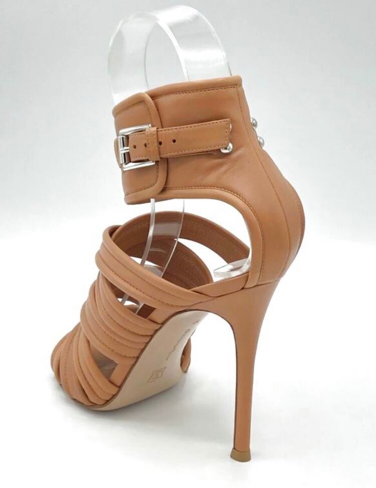 GIANVITO ROSSI(ジャンヴィトロッシ)キャメルベージュグラディエーターアンクルストラップブーティーサンダル37 [GN6428 100RIC.NAPPOWD POWDER]