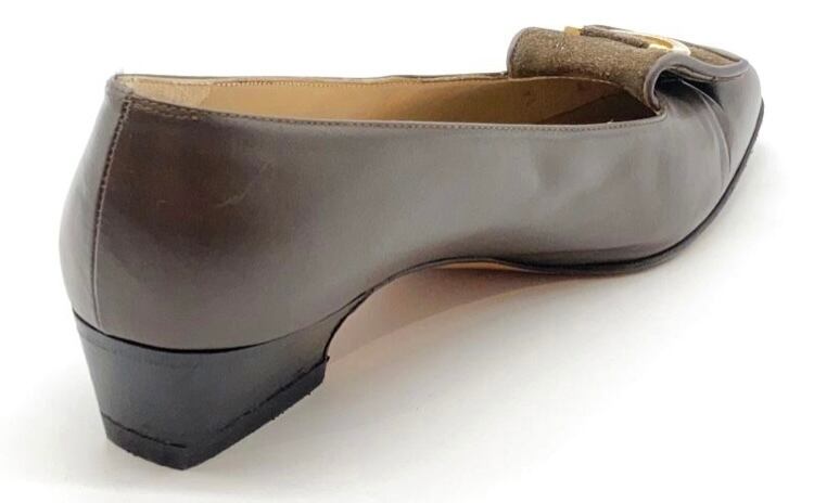OLD FERRAGAMO(オールドフェラガモ/ヴィンテージ) グレージュレザー×スエードガンチーニパンプス 5 1/2D