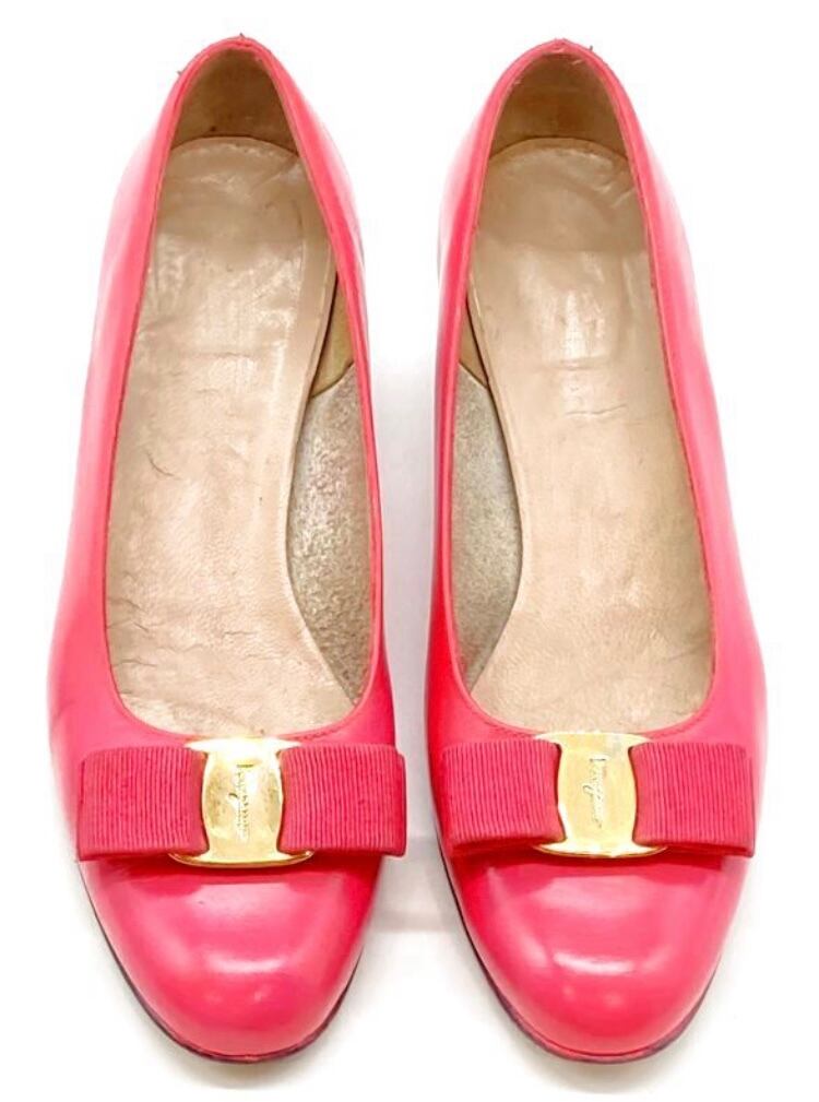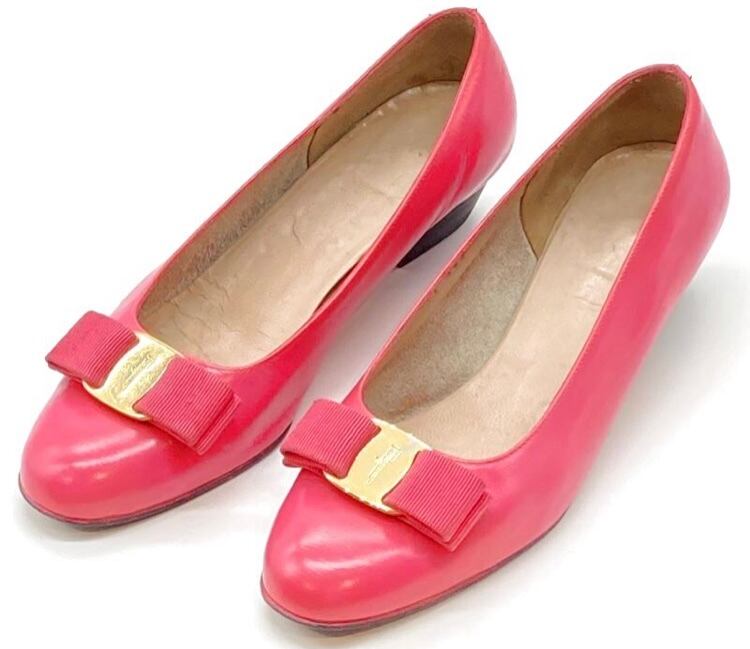 OLD FERRAGAMO(オールドフェラガモ) ビビッドピンクヴァラリボンパンプス(リカラー) 6C