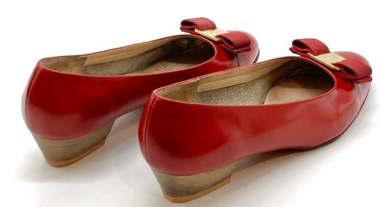 OLD FERRAGAMO(オールドフェラガモ) レッドパテント×レッドゴールドヴァラリボンパンプス(リカラー) 6 1/2B