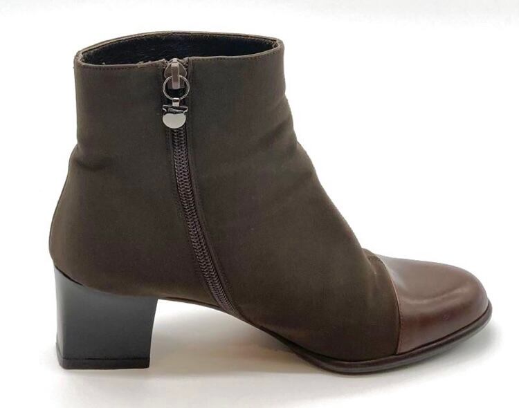 ブラウンレザー×ファブリックショートブーツ