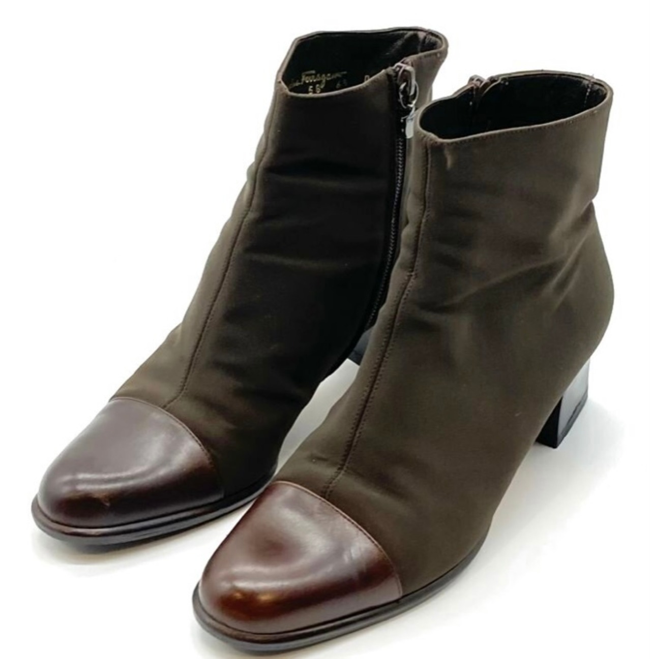 OLD FERRAGAMO(オールドフェラガモ) ブラウンレザー×ファブリックショートブーツ 6 1/2D