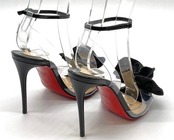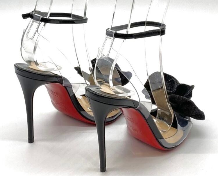 Christian Louboutin(クリスチャンルブタン)ブラックコサージュ×PVCアンクルストラップサンダル 34 1/2 [FOSSILIZA]