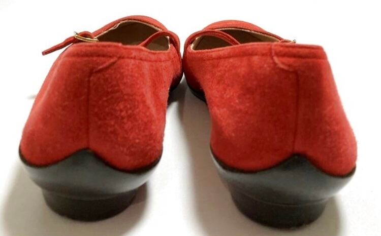 OLD FERRAGAMO(オールドフェラガモ/ヴィンテージ)レッドスエードストラップフラットシューズAUDREY 5C