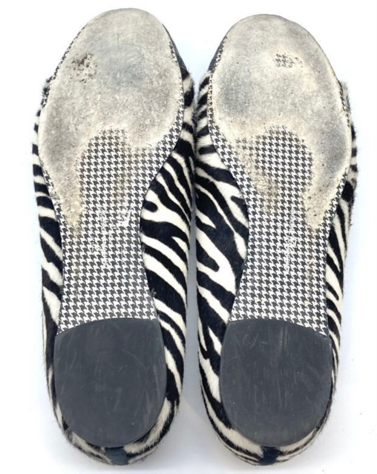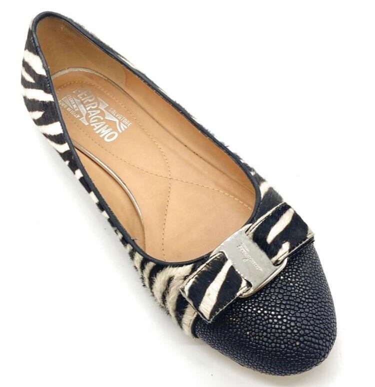 OLD FERRAGAMO(オールドフェラガモ) ハラコゼブラヴァリナリボンフラットシューズ 7 1/2D