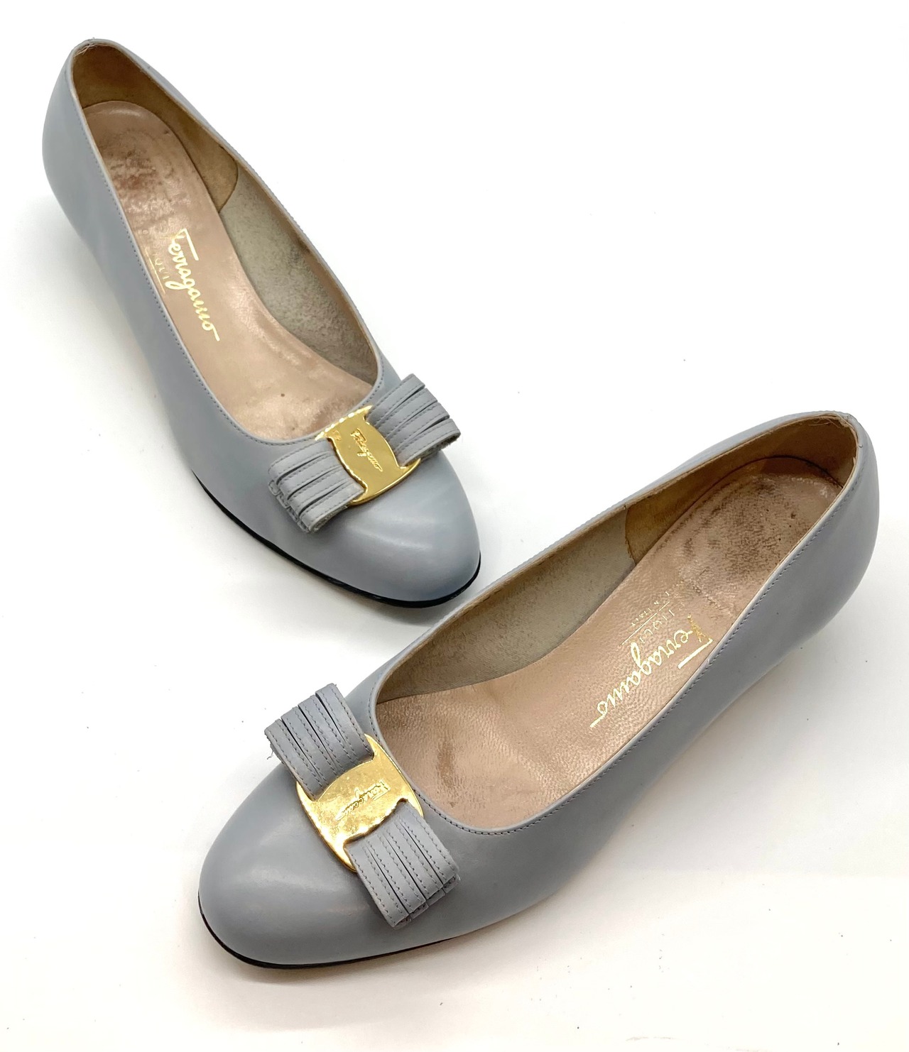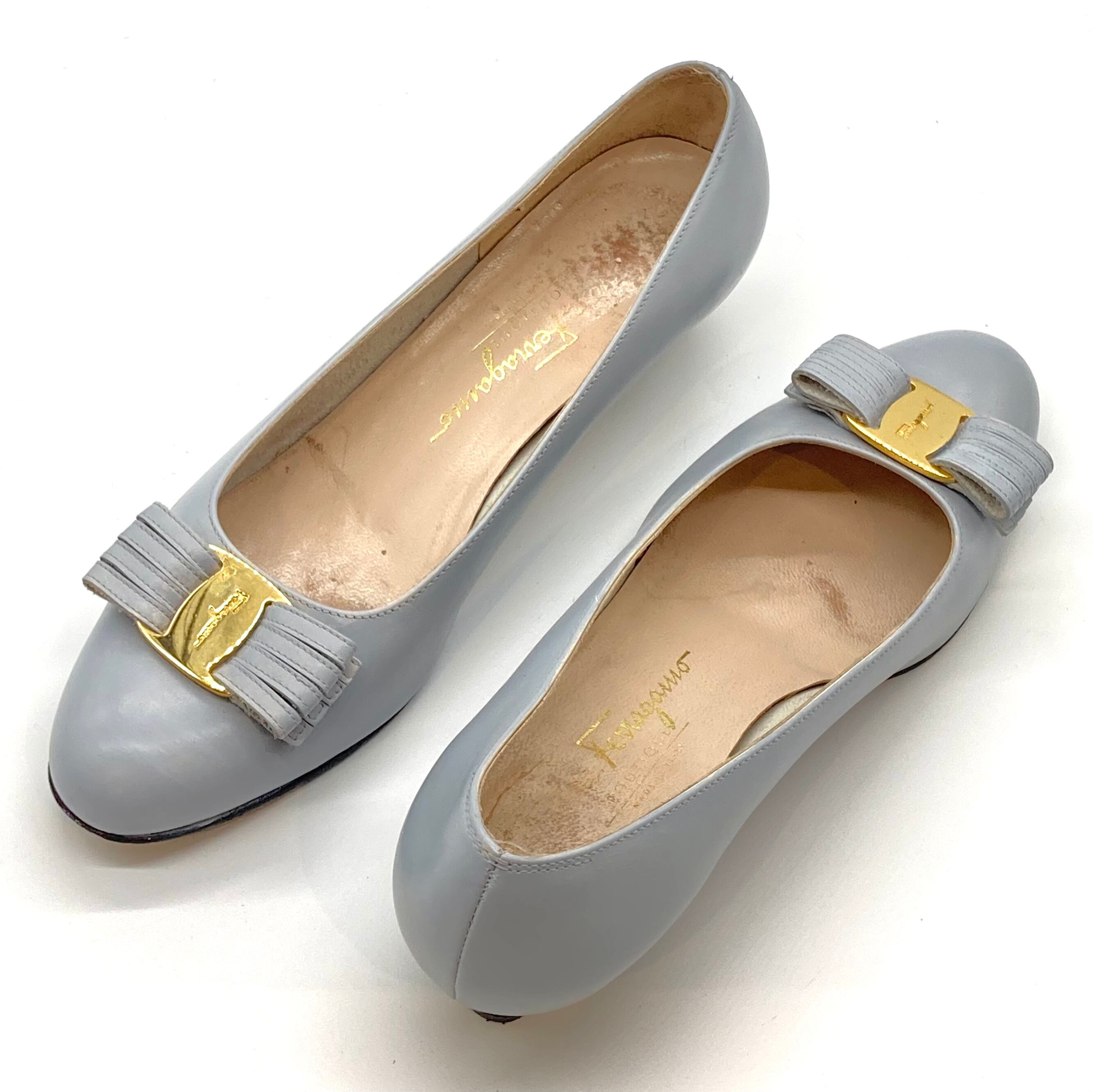 OLD FERRAGAMO(オールドフェラガモ) ライトグレーヴァラリボンパンプス(リカラー) 6C
