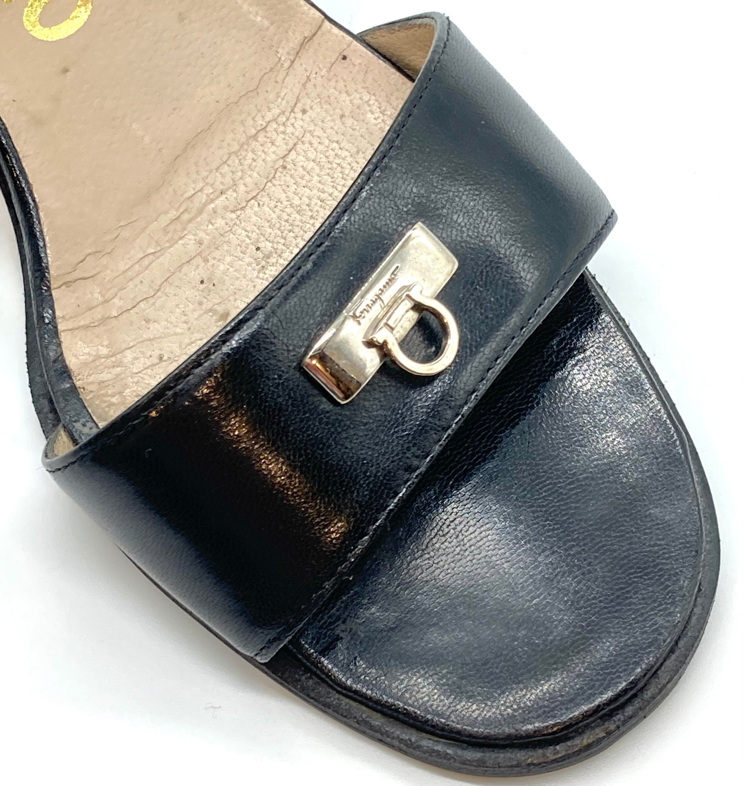 OLD FERRAGAMO(オールドフェラガモ) ブラックレザー×シルバーガンチーニ金具付きサンダル 5 1/2C