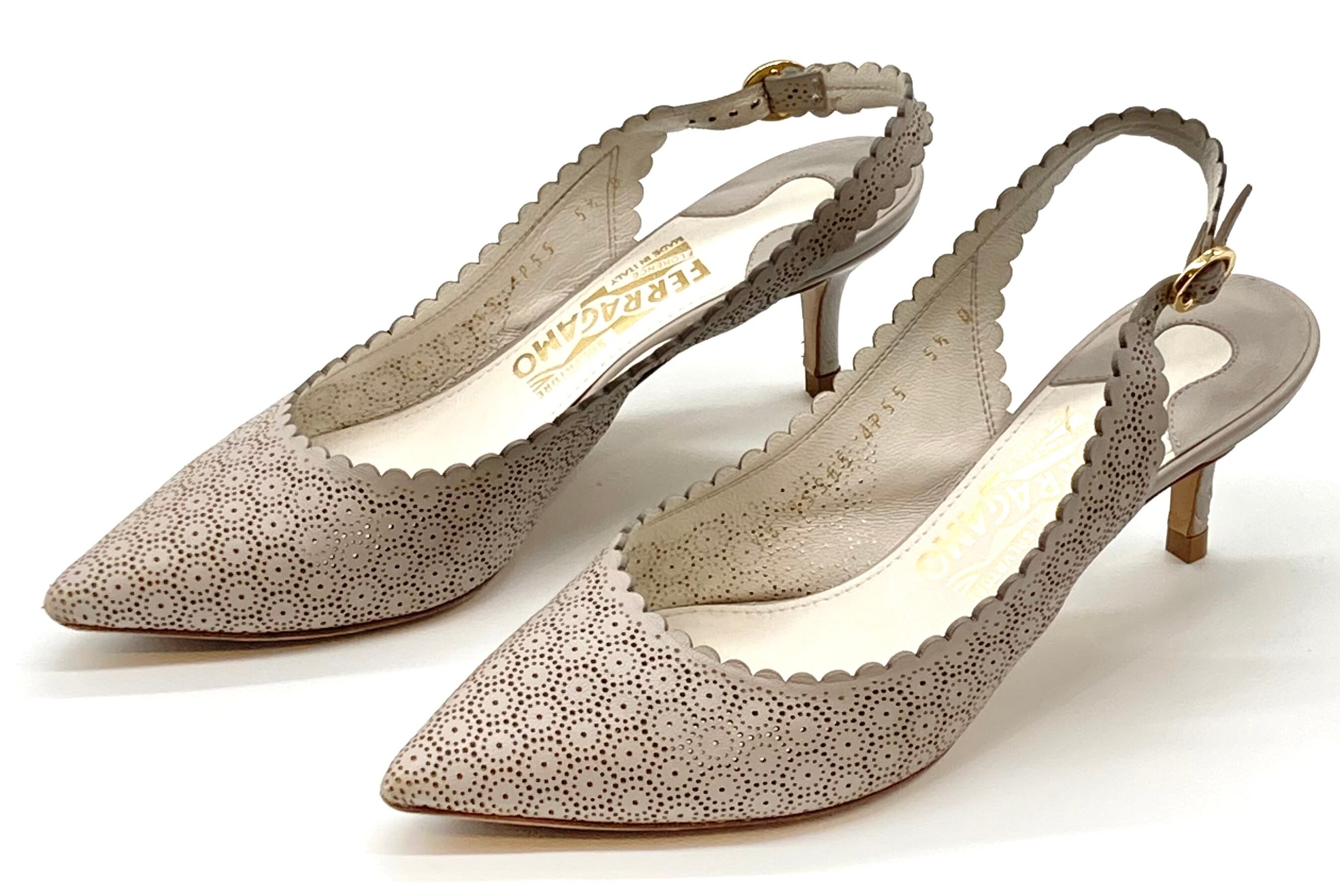 OLD FERRAGAMO(オールドフェラガモ) モーヴレースカッティングレザーバックストラップパンプス 5 1/2D