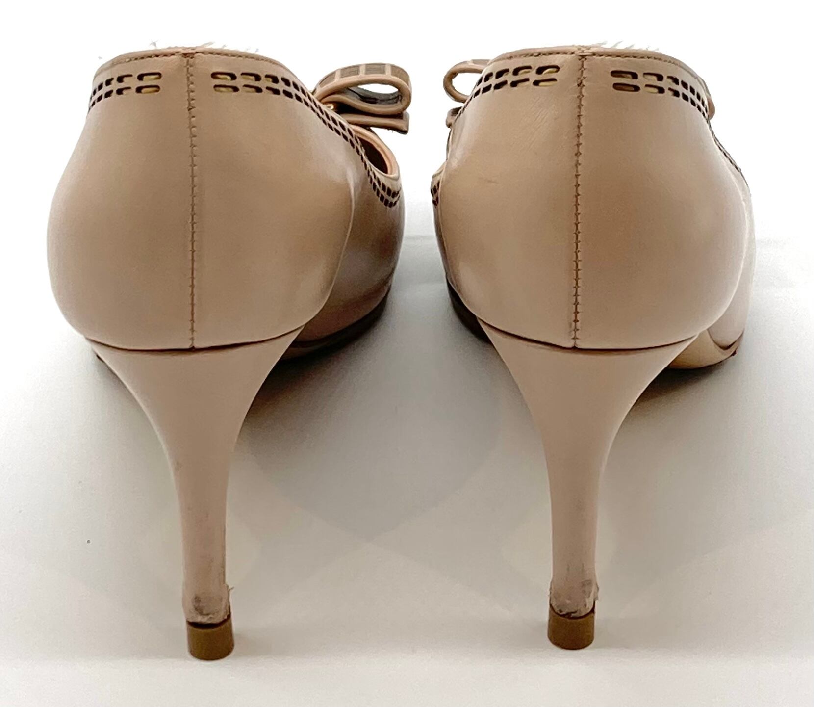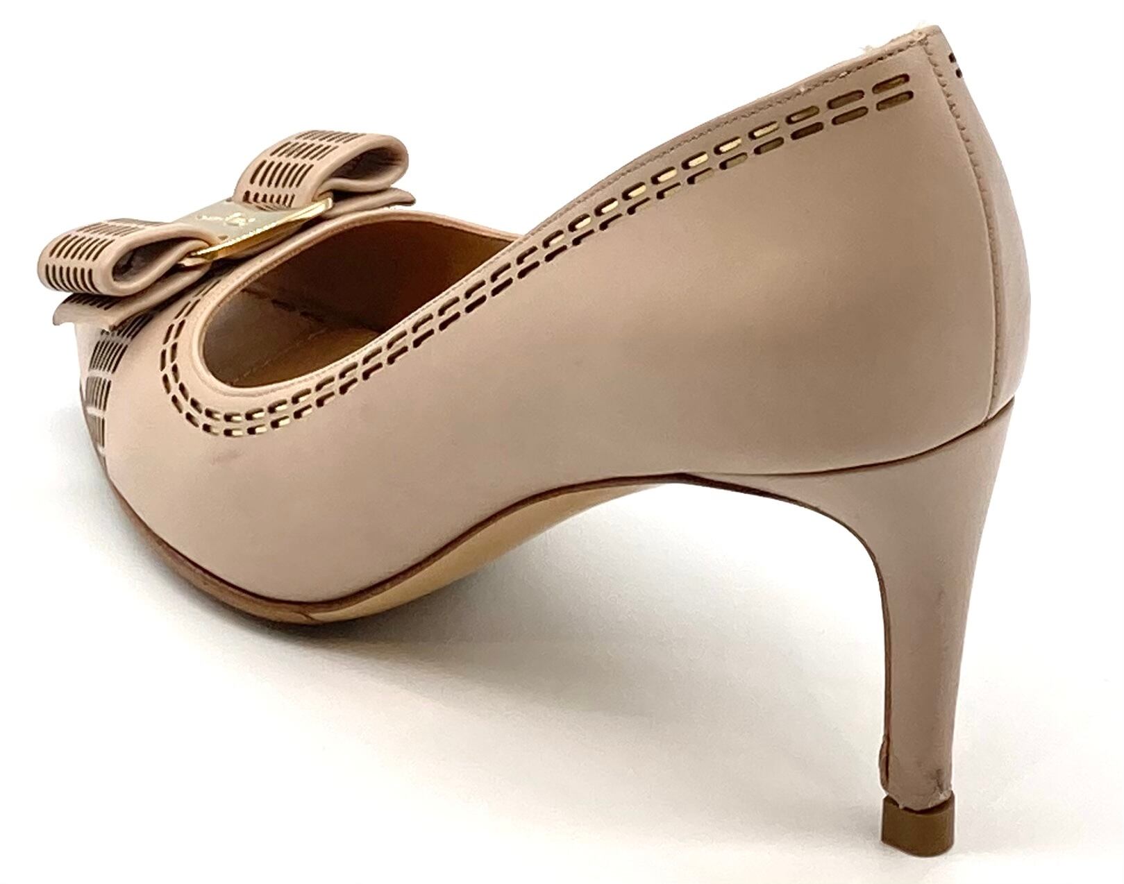 OLD FERRAGAMO(オールドフェラガモ/ヴィンテージ) ピンクベージュ×ゴールドカッティングレザーヴァラリボンオープントゥパンプス 5C