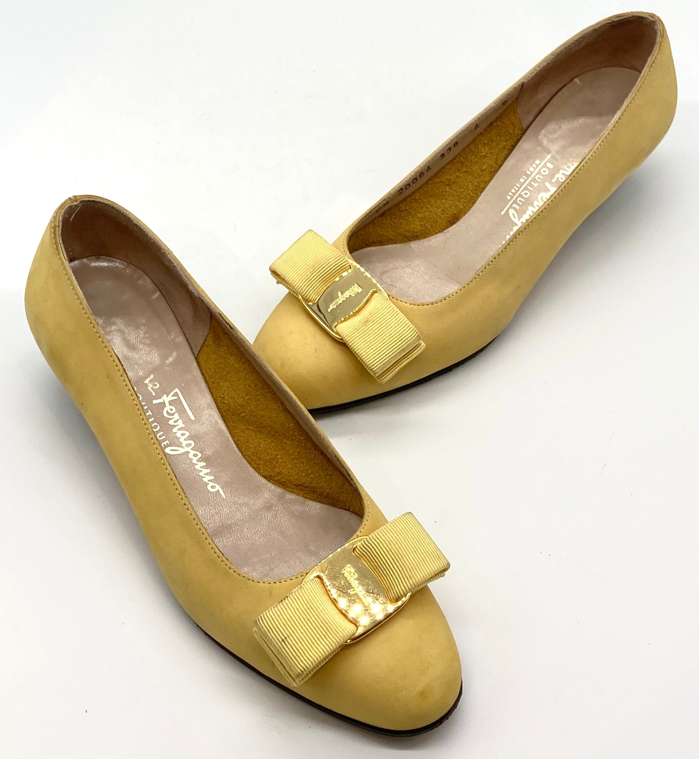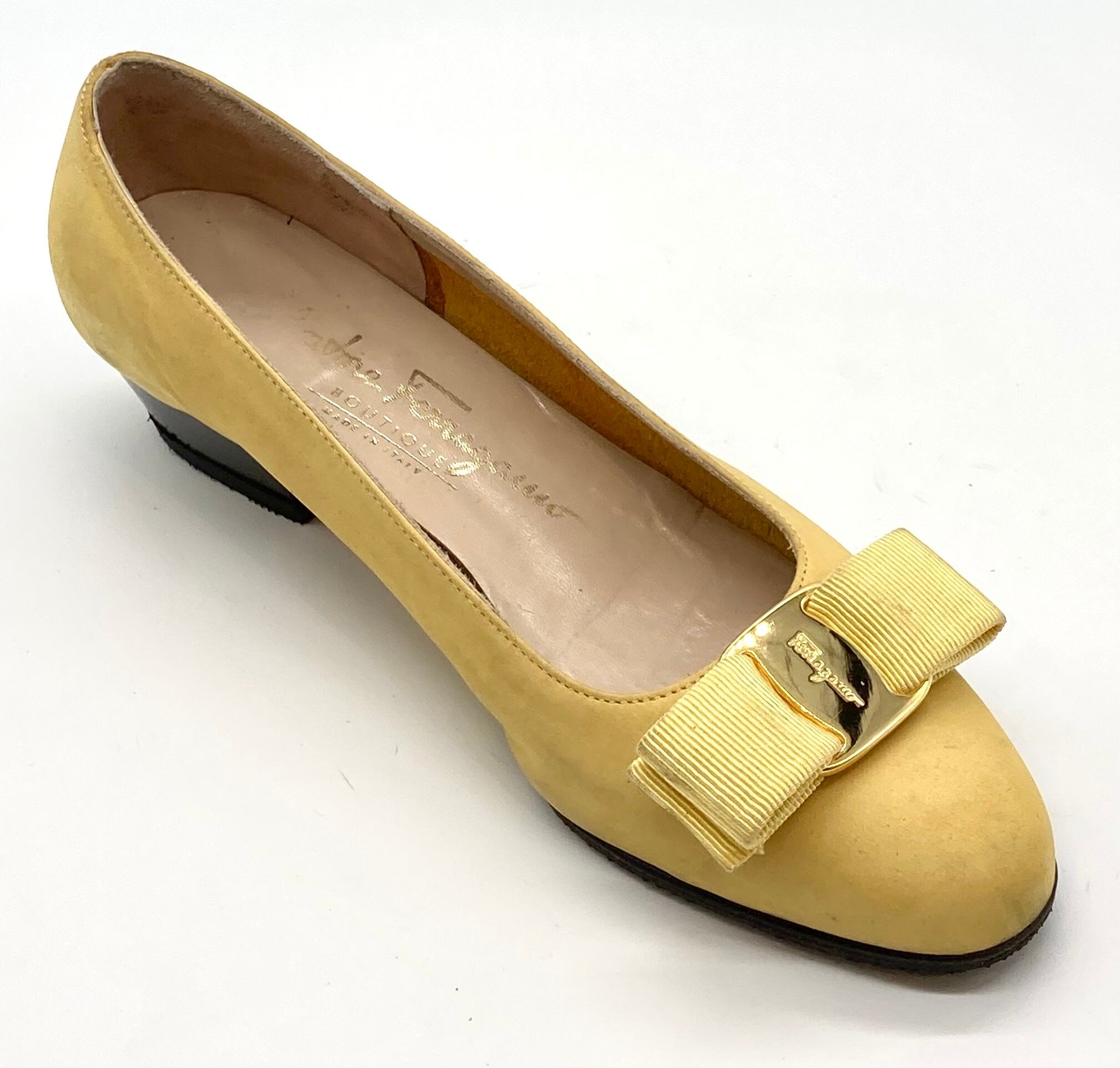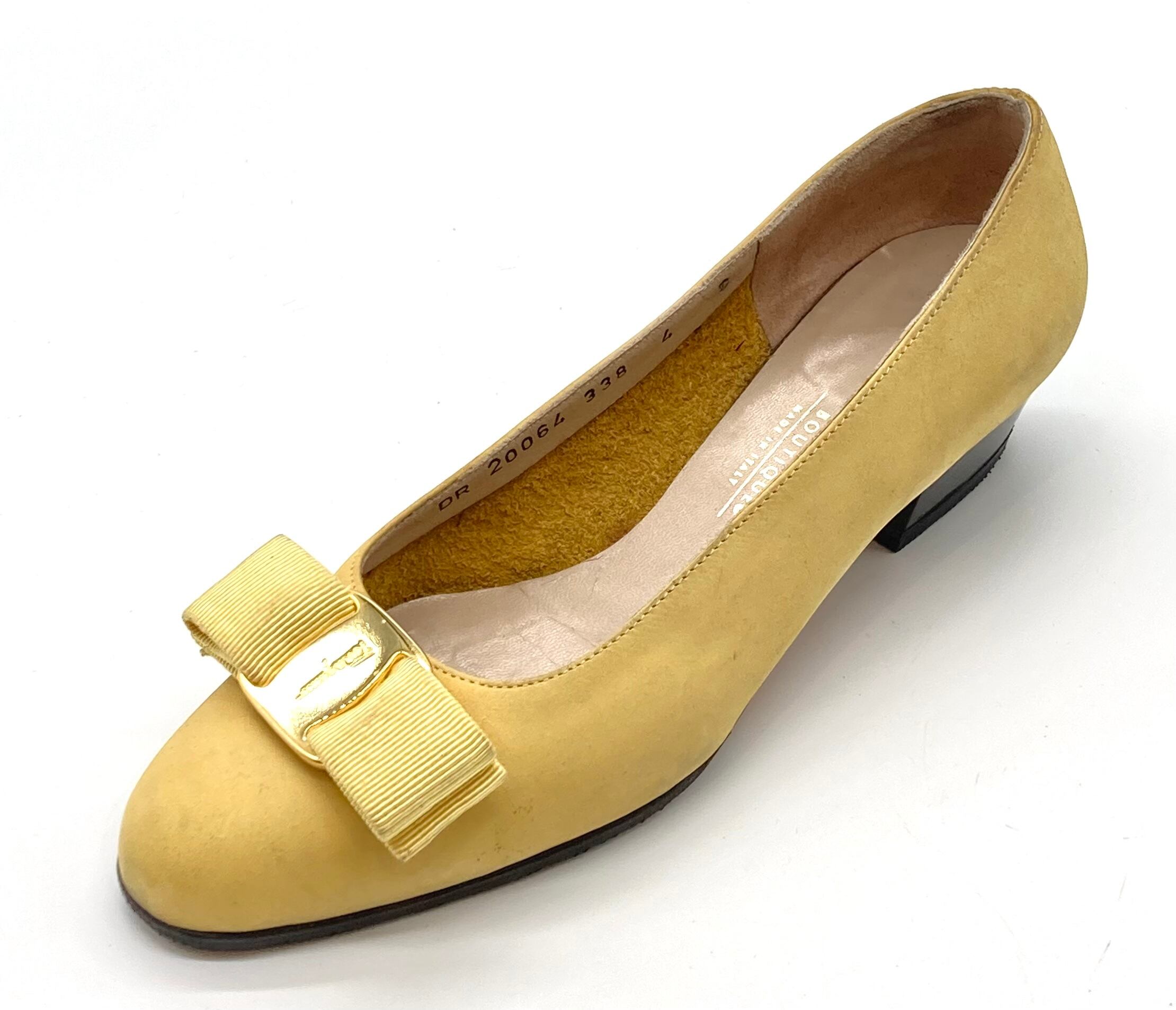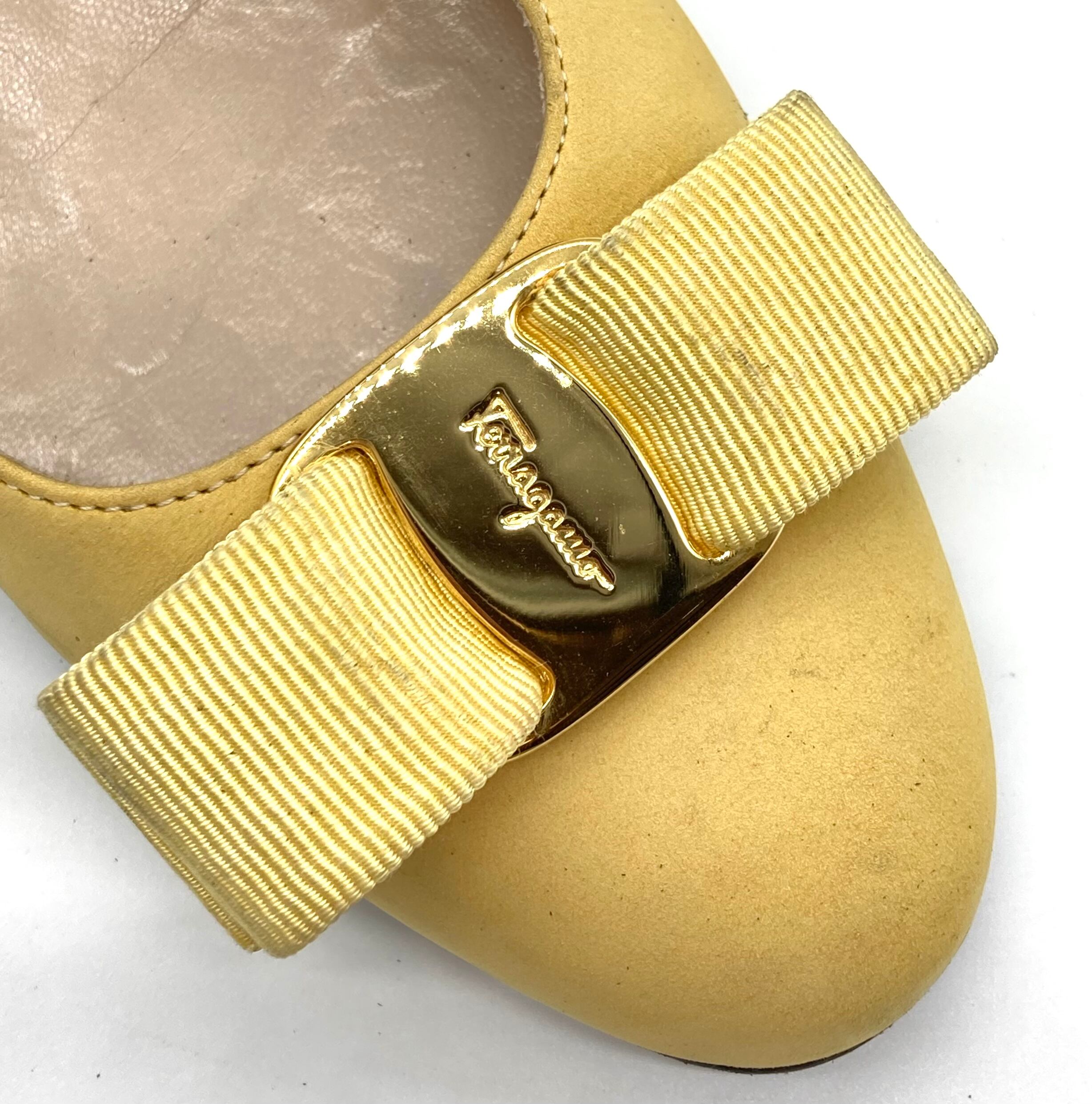 OLD FERRAGAMO(オールドフェラガモ) イエロースエードヴァラリボンパンプス 4C